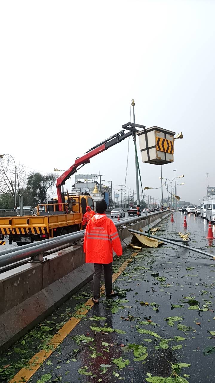 ติดตามสถานการณ์และแก้ไขความเสียหายจากพายุฤดูร้อน บนทางหลวงหมายเลข 11 บริเวณสะพานขัวสรีเวียงพิงค์ และบริเวณแยกศาลเด็ก