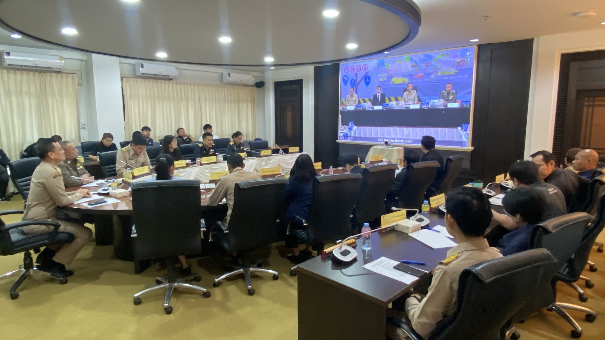 การประชุมฯ ดังกล่าวเป็นการร่วมประชุมผ่านระบบ VDO Conference ร่วมกับกรมป้องกันและบรรเทาสาธารณภัย โดยมีนายชัยวัฒน์ ชื่นโกสุม รองปลัดกระทรวงมหาดไทย เป็นประธานการประชุมเปิดศูนย์ป้องกันและลดอุบัติเหตุทางถนนช่วงเทศกาลปีใหม่ พ.ศ. 2569