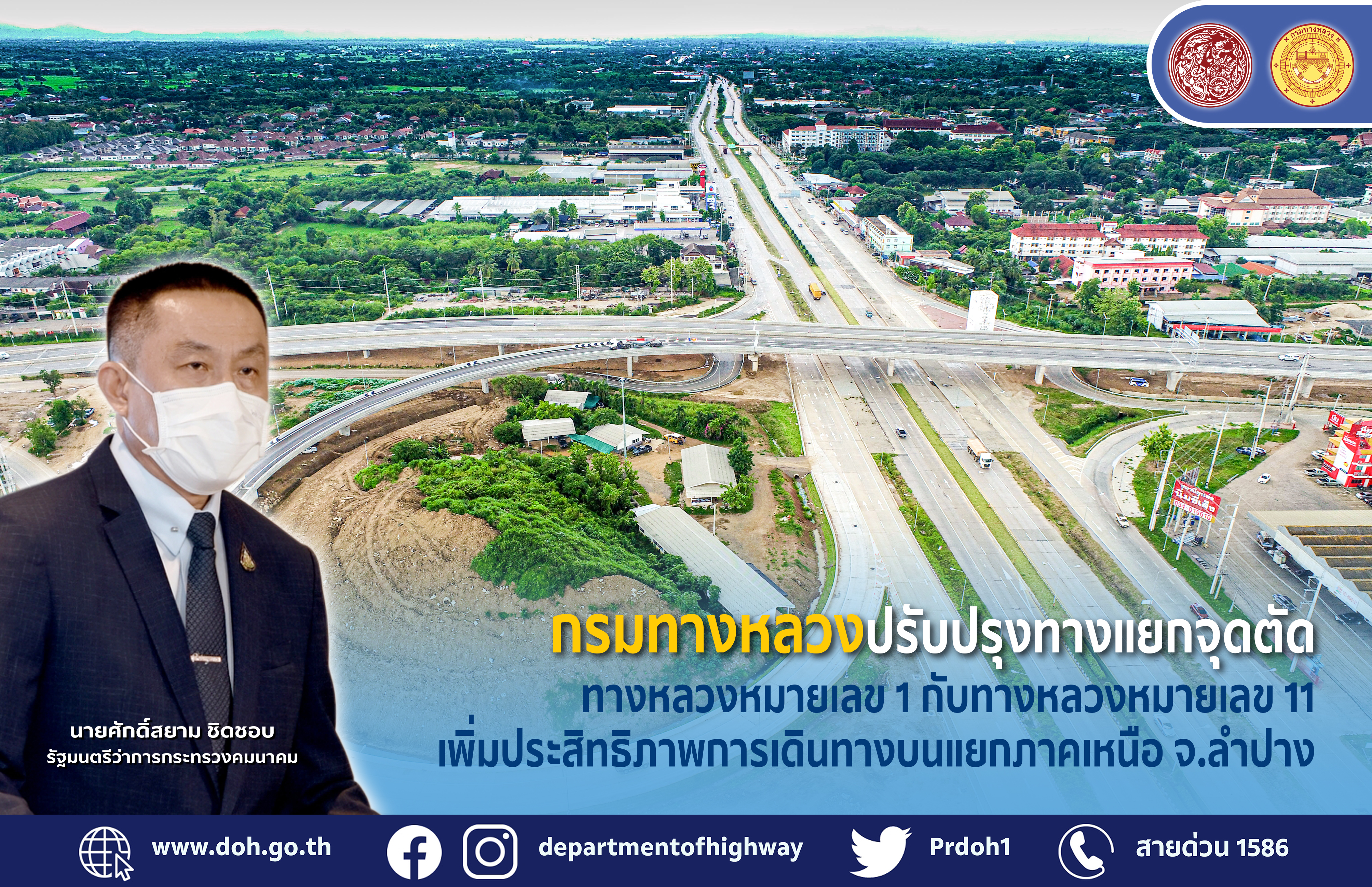 กรมทางหลวง โดย สำนักก่อสร้างสะพาน ได้ดำเนินโครงการฯ ปรับปรุงทางแยกจุดตัดทางหลวงหมายเลข 1 กับทางหลวงหมายเลข 11 (แยกภาคเหนือ) อ.เมือง จ.ลำปาง ขนาด 1 ช่องจราจร ระยะทางประมาณ 0.8 กิโลเมตร แล้วเสร็จ ตามนโยบายของนายศักดิ์สยาม ชิดชอบ รัฐมนตรีว่าการกระทรวงคมนาคม ที่ต้องการพัฒนาระบบคมนาคมให้มีความสะดวก ปลอดภัย เพื่อคุณภาพชีวิตที่ดีของประชาชน