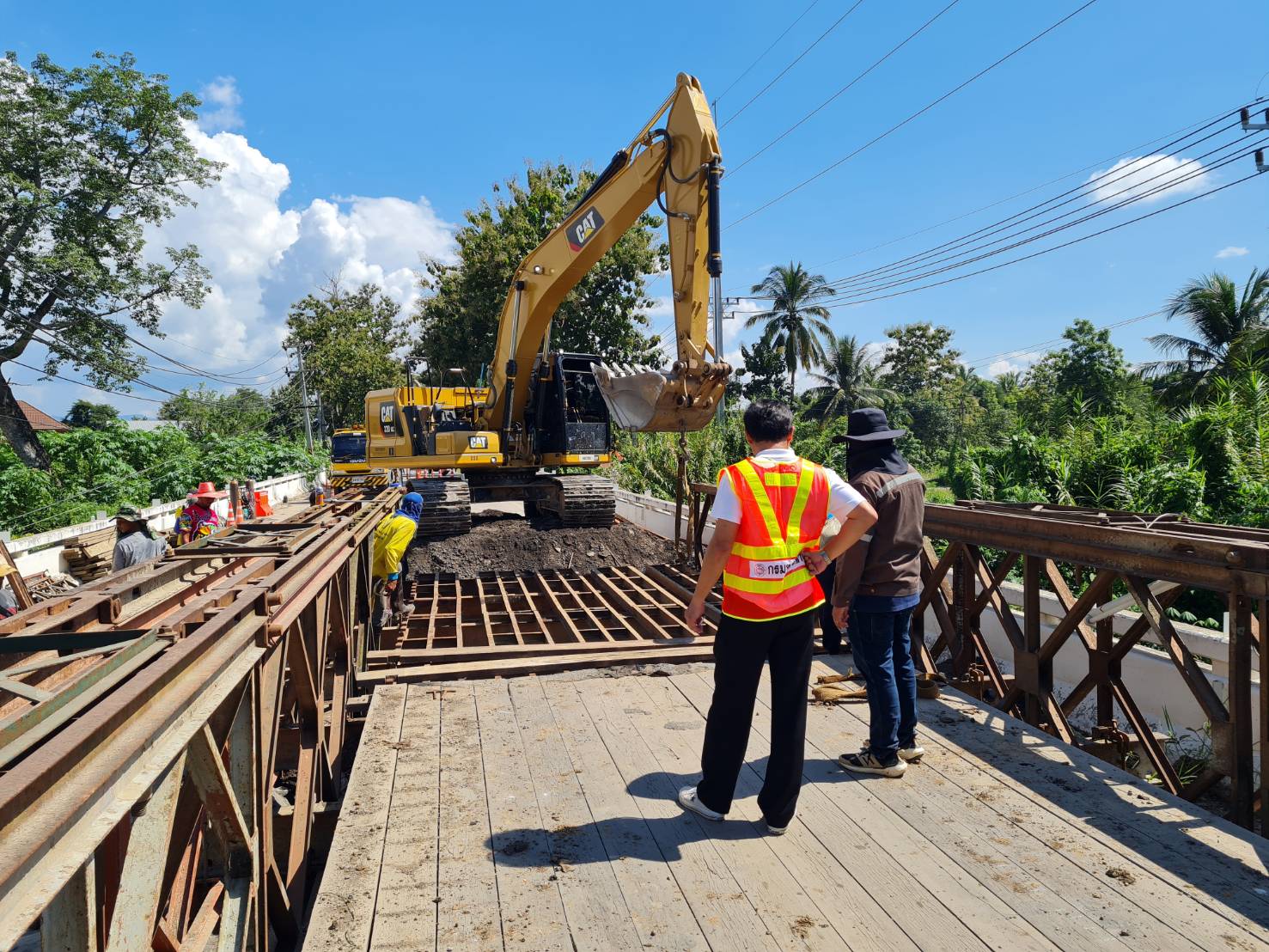 นายวรศักดิ์ วงษ์รอด วิศวกรโยธาเชี่ยวชาญ รักษาราชการแทน ผู้อำนวยการสำนักงานทางหลวงที่ 1 ลงพื้นที่ติดตามสถานการณ์ภัยพิบัติ กรณีคอสะพานชำรุดเสียหาย บริเวณทางหลวงหมายเลข 108 ตอน สะพานแม่กลาง - บ้านบ่อแก้ว ที่ กม. 89+800 ต.หางดง อ.ฮอด จ.เชียงใหม่ ซึ่งขณะนี้ศูนย์สร้างและบูรณะสะพานที่ 1 ( พิจิตร ) ได้เข้าดำเนินการขยายช่วง Span ของสะพานเบลีย์ เพิ่มอีก 2 ช่วง จากเดิม 7 ช่วง ความยาวรวม 27 เมตร กว้าง 5 เมตร พร้อมทั้งเพิ่มจุดรองรับ Support อีก 1 แห่ง เพื่อเพิ่มความแข็งแรงของตัวสะพานและสามารถรองรับน้ำหนักบรรทุกได้เพิ่มขึ้น หากดำเนินการก่อสร้างแล้วเสร็จสามารถรับน้ำหนักบรรทุกได้สูงสุด 55 - 60 ตัน ทำให้ประชาชนที่เดินทางสัญจรไป - มา ได้รับความสะดวกและความปลอดภัย ปัจจุบันได้เปิดให้การจราจรสามารถผ่านได้ 1 ช่องจราจร