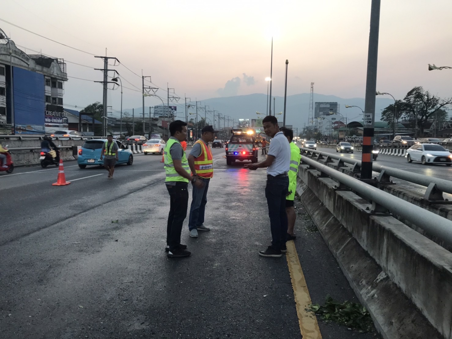 วันนี้(18 มีนาคม 2566) นายวรศักดิ์ วงษ์รอด วิศวกรโยธาเชี่ยวชาญ รักษาราชการแทน ผู้อำนวยการสำนักงานทางหลวงที่ 1 พร้อมด้วยเจ้าหน้าที่แขวงทางหลวงเชียงใหม่ที่ 2 ได้ลงพื้นที่ติดตามสถานการณ์ความเสียหาย บนทางหลวงหมายเลข 11 บริเวณสะพานขัวสรีเวียงพิงค์ และบริเวณแยกศาลเด็ก ภายหลังจากเกิดเหตุการณ์พายุฤดูร้อน ฝนตกหนัก และลูกเห็บพัดถล่มในพื้นที่จังหวัดเชียงใหม่ ส่งผลให้ต้นไม้ เสาไฟฟ้า ป้ายโฆษณาล้มทับทรัพย์สิน สิ่งปลูกสร้าง ได้รับความเสียหาย และกีดขวางทางจราจร รวมทั้งทำให้กระแสไฟฟ้าดับในหลายจุดทั่วเมืองเชียงใหม่