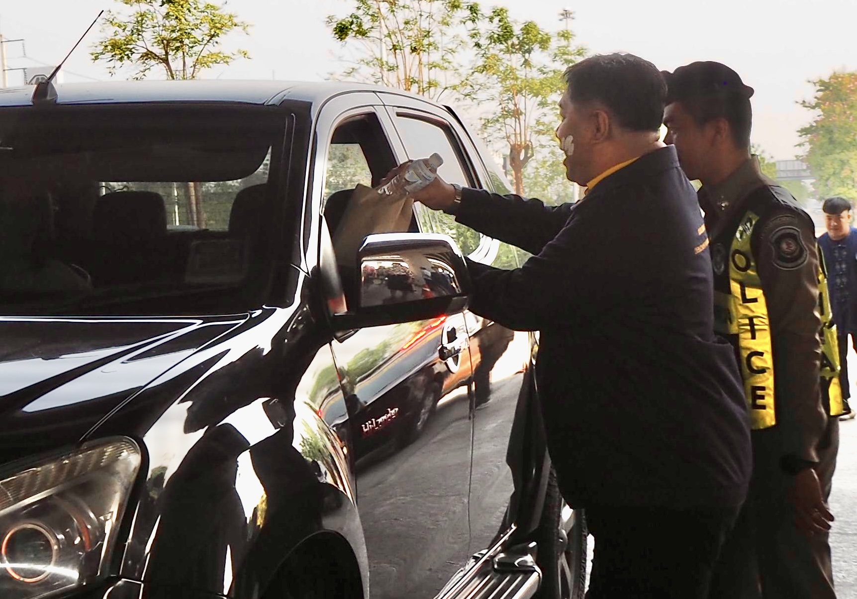 ในการนี้ นายสมเดช โสภณดิเรกรัตน์ ผู้อำนวยการแขวงทางหลวงเชียงใหม่ที่ 2 และเจ้าหน้าที่ ได้ร่วมกันมอบน้ำดื่ม แผ่นพับข้อมูลทางหลวง ให้กับผู้ใช้รถใช้ถนนบริเวณทางหลวงหมายเลข 11 ใต้สะพานต่างระดับดอนจั่น (ถนนซุปเปอร์ไฮเวย์) ตำบลท่าศาลา อำเภอเมืองเชียงใหม่ จังหวัดเชียงใหม่ ทำให้บรรยากาศการเปิดจุดบริการประชาชน ศูนย์อำนวยความสะดวกปลอดภัยเทศกาลสงกรานต์ พ.ศ.2568 ของแขวงทางหลวงเชียงใหม่ที่ 2 เต็มไปด้วยรอยยิ้มและมิตรไมตรี ต้อนรับเทศกาลสงกรานต์