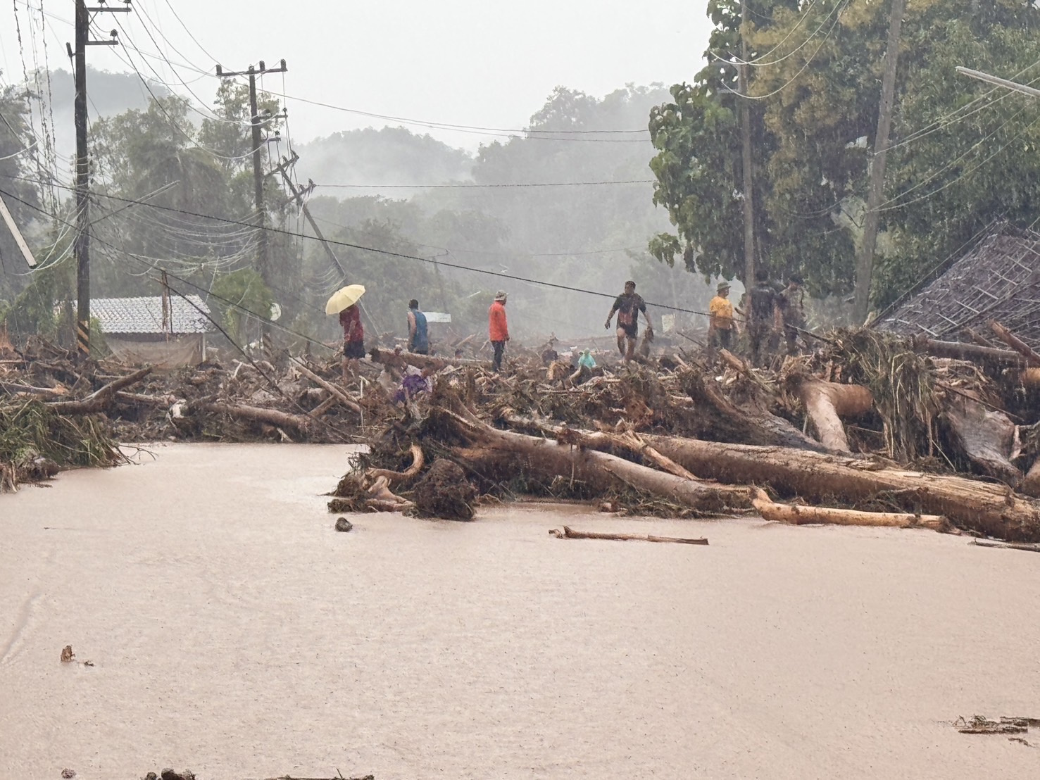 เกิดเหตุน้ำป่าไหลหลากพัดพาต้นไม้และท่อนไม้จำนวนมากลงมากีดขวางเส้นทาง บนทางหลวงหมายเลข 108 ตอน แม่สุริน – ปางหมู ระหว่าง กม. 340+000 ถึง กม. 341+000