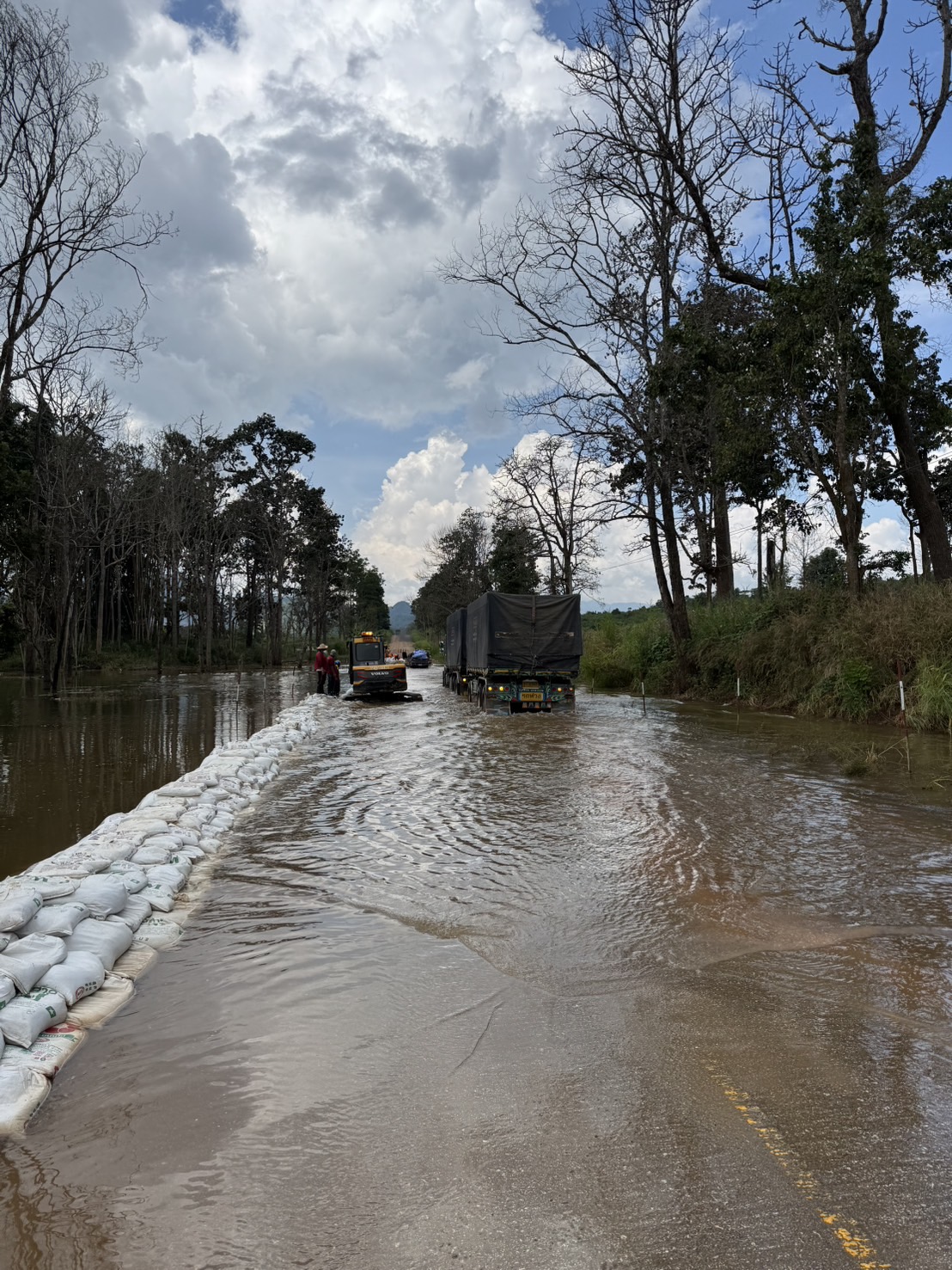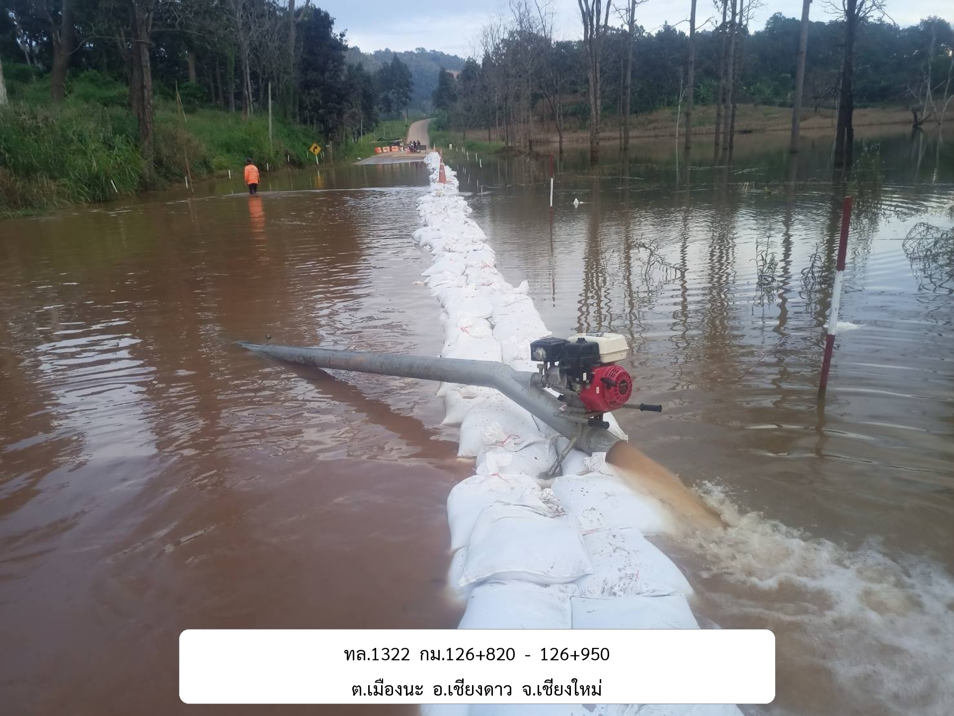 นายวรศักดิ์ วงษ์รอด ผู้อำนวยการสำนักงานทางหลวงที่ 1 พร้อมด้วยนายวารินทร์ คำศรีใจ รองผู้อำนวยการแขวงทางหลวงเชียงใหม่ที่ 3 ลงพื้นที่ติดตามการแก้ไขสถานการณ์น้ำท่วมขังผิวจราจร ซึ่งทำให้การจราจรไม่สามารถผ่านได้ บริเวณทางหลวงหมายเลข ทล.1322 ตอน แม่จา-รินหลวง ที่กม.126+820 - กม.126+950