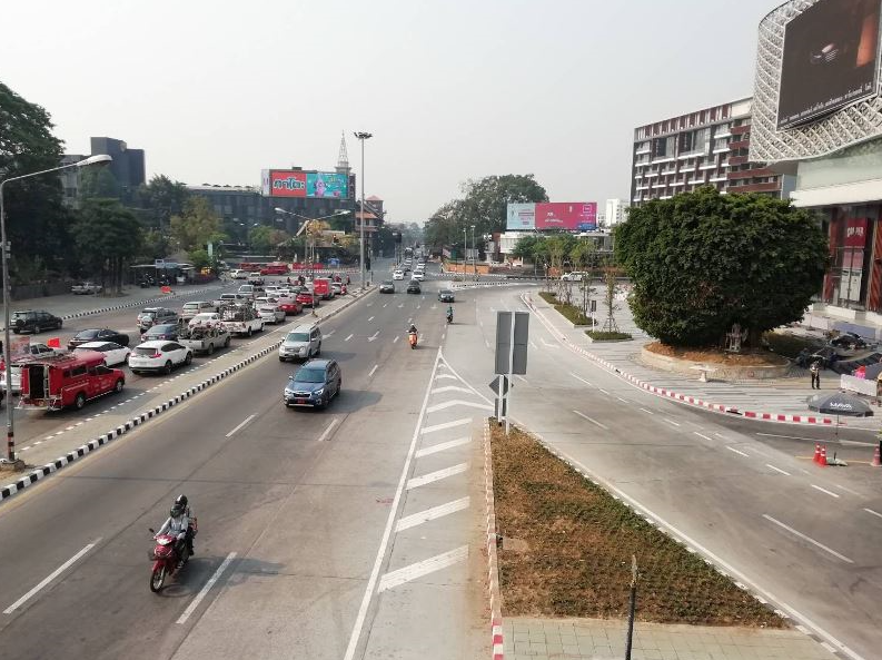 นายสราวุธ ทรงศิวิไล อธิบดีกรมทางหลวง กล่าวว่า ขณะนี้แขวงทางหลวงเชียงใหม่ที่ 2 ได้ทำการตรวจรับงานก่อสร้างลานกิจกรรมสาธารณะพร้อมสวนหย่อม ความยาว 128 เมตร (พื้นที่ประมาณ 950 ตร.ม.) บริเวณลานน้ำพุหน้าศูนย์การค้าเมญ่าเป็นที่เรียบร้อยแล้ว โดยไม่มีปัญหาเรื่องการร้องเรียนจากประชาชนในพื้นที่เนื่องจากแขวงทางหลวงเชียงใหม่ที่ 2 ได้ดำเนินการจัดการมีส่วนร่วมของประชาชนและหน่วยงานที่เกี่ยวข้องในหลายรูปแบบ ทั้งการจัดประชุมชี้แจงโครงการและรับฟังความคิดเห็นทั้งก่อนและระหว่างการก่อสร้าง รวมทั้งจัดประชุมคณะทำงานจังหวัดเชียงใหม่ เพื่อนำข้อมูลความต้องการของประชาชนและหน่วยงานต่างๆ มาพิจารณาปรับปรุงรูปแบบการก่อสร้างให้สอดคล้องกับความต้องการใช้ประโยชน์ของประชาชนและยังคงความสวยงามนอกจากนั้น โครงการดังกล่าวกรมทางหลวงได้ทำการออกแบบและมีการตรวจสอบโดยผู้เชี่ยวชาญด้านการออกแบบทางจากสำนักสำรวจและออกแบบ รวมทั้งวิเคราะห์การจราจรของทางแยกร่วมด้วยการก่อสร้างลานกิจกรรมสาธารณะพร้อมสวนหย่อมบนที่ดินของกรมทางหลวงดังกล่าว มีการปรับลดระดับความสูงให้ใกล้เคียงกับระดับทางเท้าเพื่อให้ประชาชนทุกวัย โดยเฉพาะเด็ก ผู้สูงอายุ ผู้พิการ รวมทั้งนักท่องเที่ยวสามารถใช้ประโยชน์ในพื้นที่ได้สะดวกยิ่งขึ้น และสร้างความชัดเจนระหว่างพื้นที่ลานกิจกรรมฯ กับพื้นที่ของเอกชน เพื่อลดปัญหาการรุกล้ำและการใช้ประโยชน์ในเชิงพาณิชย์