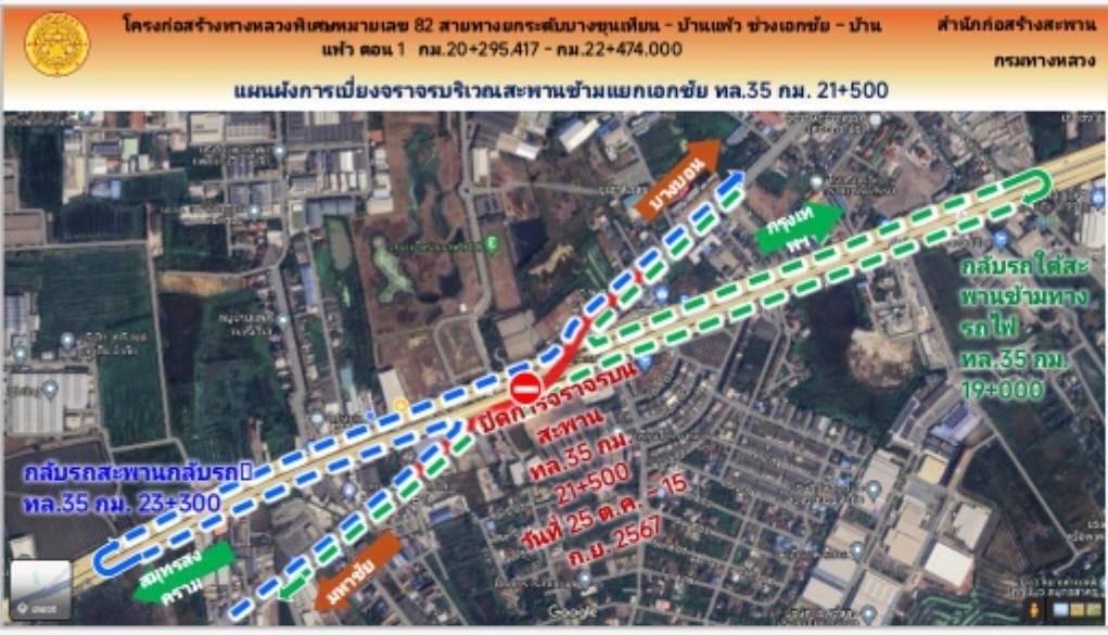 แจ้งปิดการจราจรสะพานต่างระดับเอกชัย พื้นที่ อ.เมือง จ.สมุทรสาคร บนทางหลวงหมายเลข 35 (ถนนพระรามที่ 2)