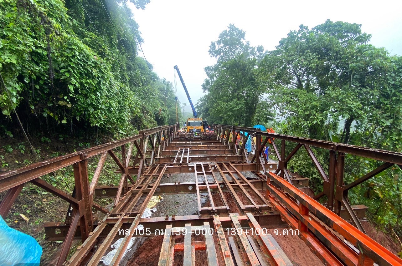 กรมทางหลวงรายงานสถานการณ์น้ำท่วม / ดินสไลด์บนทางหลวง พื้นที่ จ.น่าน และ จ.ตาก ผ่านไม่ได้ 7 แห่ง เร่งทอดสะพานเบลี่ย์ให้ประชาชนสัญจรได้อย่างปกติ