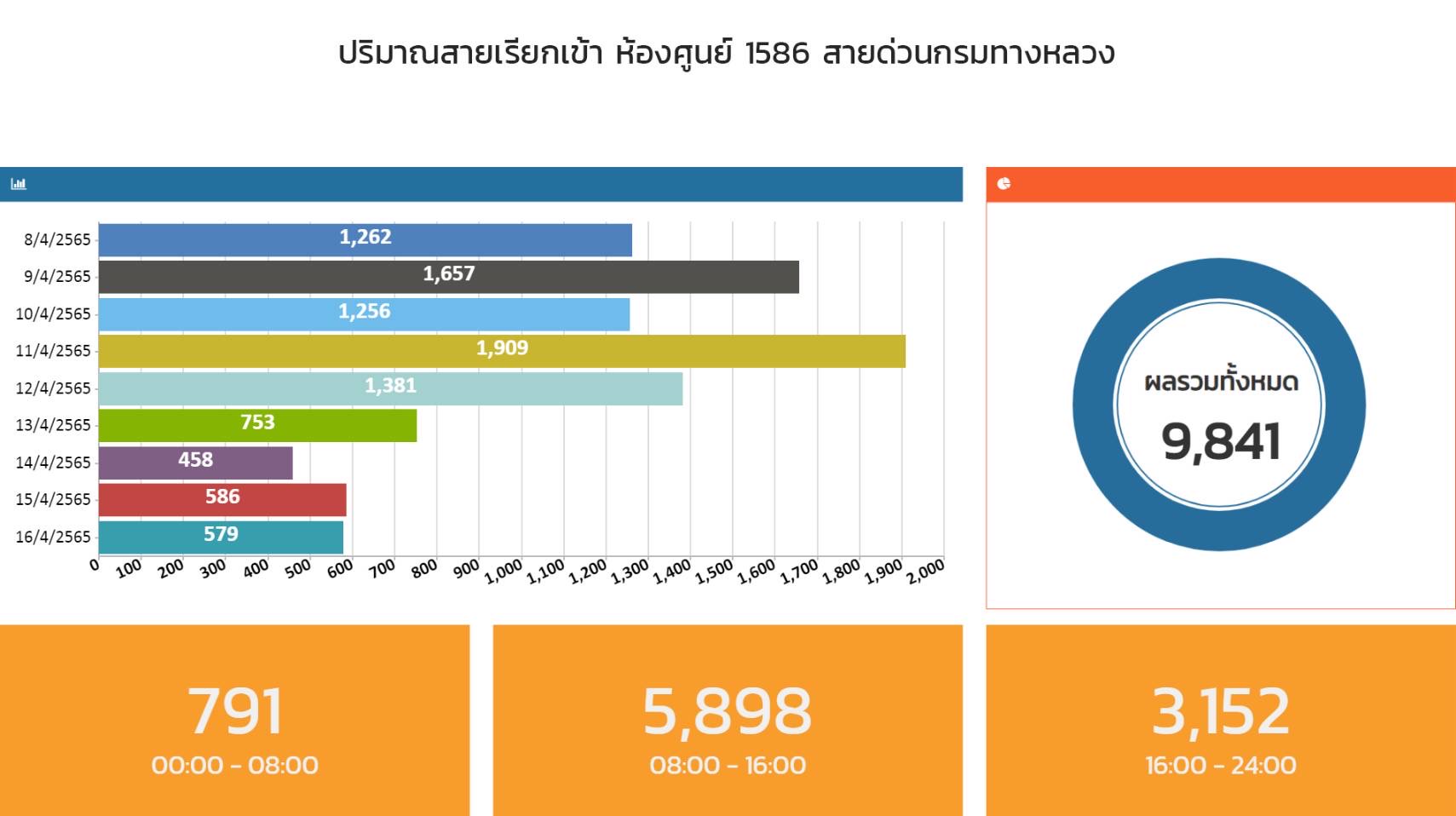 กรมทางหลวงสรุปการอำนวยความสะดวกปลอดภัยและการให้บริการประชาชนในช่วงเทศกาลสงกรานต์ 2565 ระหว่างวันที่ 10 – 15 เมษายน 2565 มียอดผู้ใช้บริการสะสม 6 วันจำนวน 58,510 ราย
