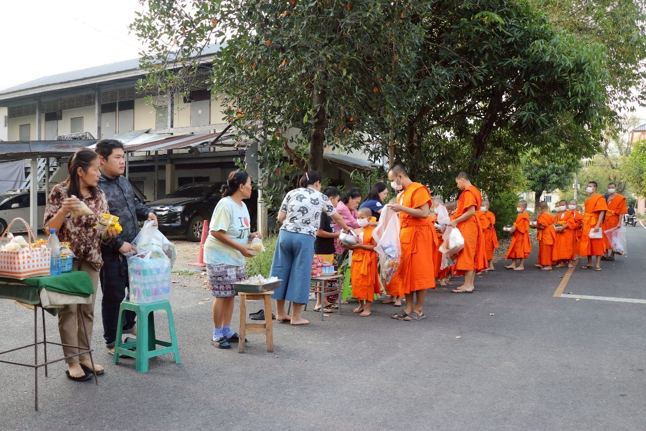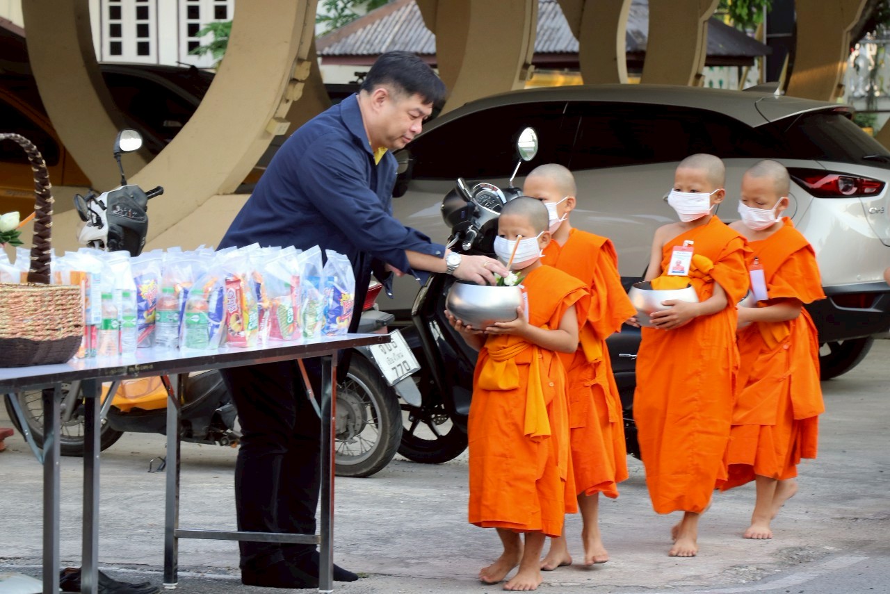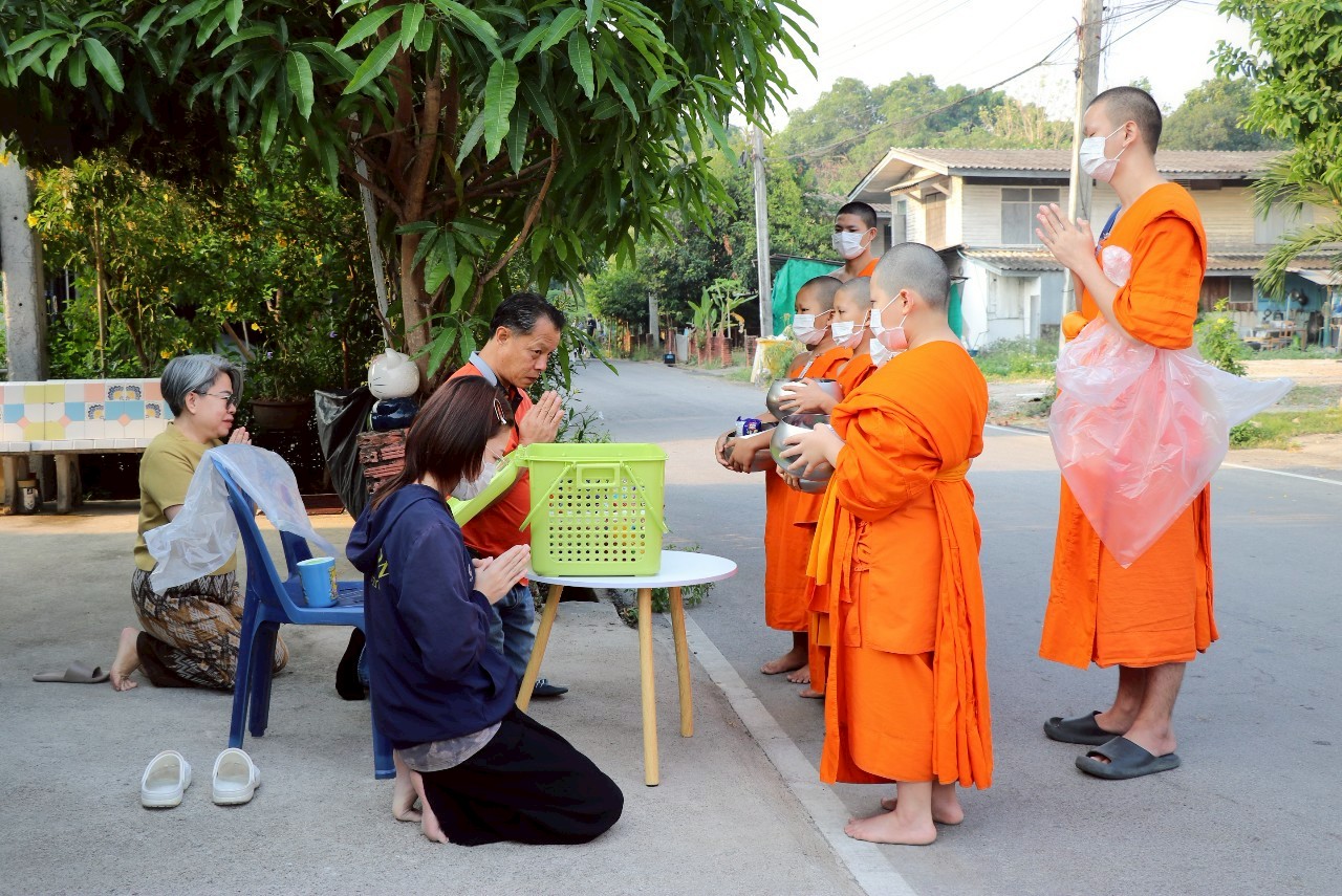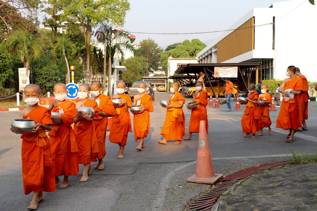 อาหารแห้ง ในโครงการบรรพชาสามเณรภาคฤดูร้อน ประจำปี 2568 วัดสวนดอกพระอารามหลวง ได้นำสามเณรออกมาบิณฑบาต บริเวณสำนักงาน และบริเวณบ้านพักอาศัยข้าราชการ เพื่อเป็นการทะนุบำรุงและสืบทอดพระพุทธศาสนาสืบไป