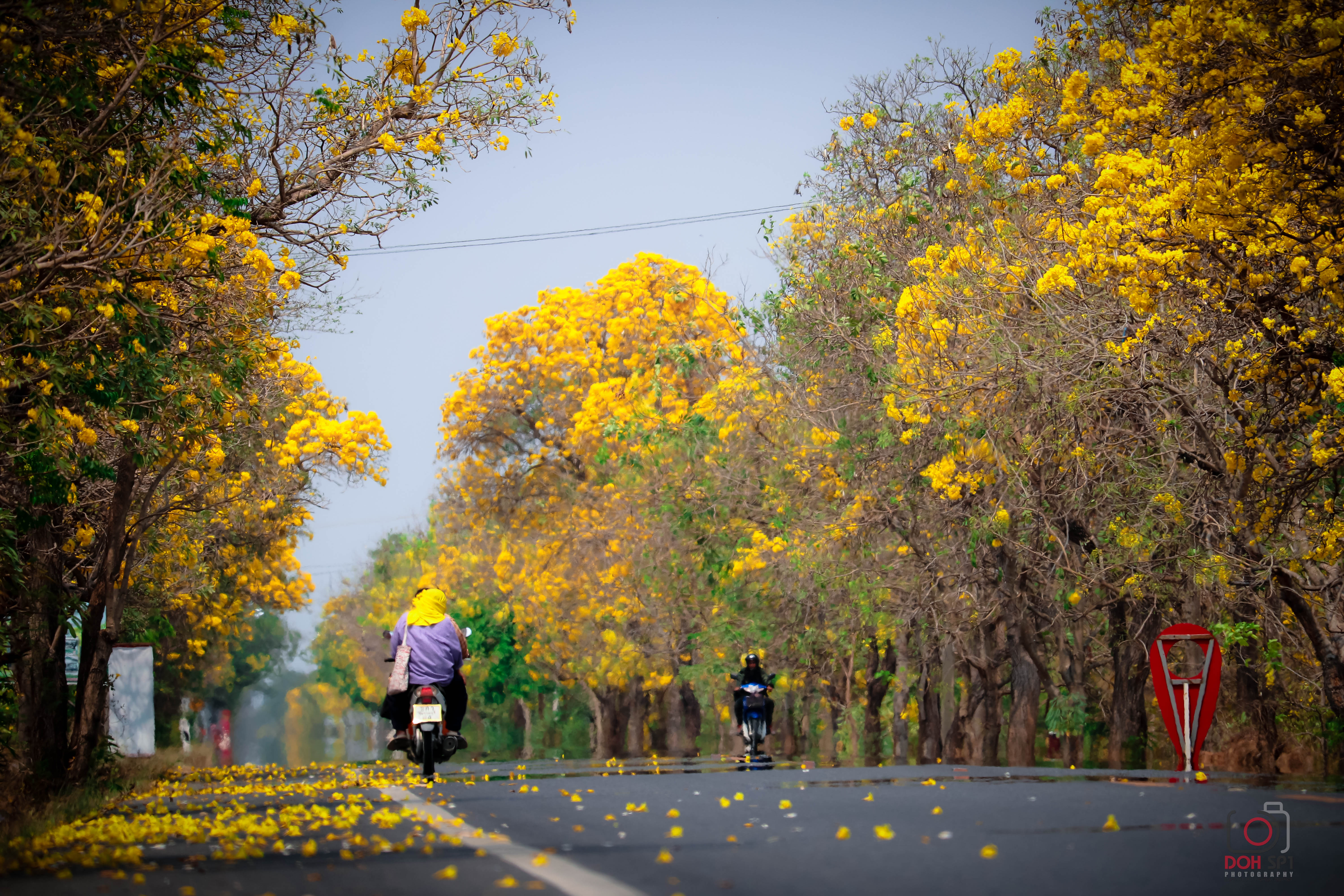 ถนนสายดอกเหลืองปรีดียาธร หรือ ตาเบบูญ่า ตั้งอยู่บนทางหลวงหมายเลข 3502 (ตอน ดอนไร่ – อ่างเก็บน้ำกระเสียว) บริเวณ กม.0+100 – กม.11+200 ระยะทางกว่า 11 กิโลเมตร ในพื้นที่ ตำบลหนองสะเดา อำเภอสามชุก และตำบลหนองโพธิ์ อำเภอหนองหญ้าไซ จังหวัดสุพรรณบุรี ขณะนี้เริ่มออกดอกบานสะพรั่งเต็มสองข้างทางแล้ว ซึ่งจะออกดอกช่วงเดือนกุมภาพันธ์ – มีนาคม ของทุกปี ทั้งนี้ขึ้นอยู่กับสภาพอากาศด้วย ตาเบบูญ่า หรือ เหลืองปรีดียาธร เป็นต้นไม้ที่ หม่อมราชวงศ์ปรีดิยาธร เทวกุล นำเข้ามาปลูกจากอินโดเซีย เป็นไม้ยืนต้น มีลักษณะเป็นรูประฆังสีเหลือง ปลายกลีบแยกเป็นรูปปากเปิด ทำให้ช่วงที่มีการออกดอกนั้น มีความน่าสนใจและดึงดูดให้กับนักท่องเที่ยวและประชาชนที่จะถ่ายภาพจำนวนมาก สำหรับการเดินทางมาท่องเที่ยวจากกรุงเทพฯ ให้ใช้ทางหลวงหมายเลข 340 มุ่งหน้าสู่จังหวัดสุพรรณบุรี เลี้ยวซ้ายที่แยกสามชุก บริเวณ กม. 103 +600 ผ่านตลาดสามชุก ไปยัง ทางหลวงหมายเลข 3365 อีก 4 กิโลเมตร เลี้ยวขวาที่แยกดอนยาว ตัดทางหลวงหมายเลข 3496 อีกประมาณ 5 กิโลเมตร เลี้ยวซ้ายเข้าสู่ ทางหลวงหมายเลข 3502 (ถนนสายดอกไม้) ประวัติความเป็นมาถนนสายดอกไม้นี้ เมื่อปี 2540 กรมทางหลวงได้ก่อสร้างถนนหมายเลข 3502 ตอนดอนไร่ - อ่างเก็บน้ำกระเสียว ซึ่งเป็นเส้นทางเชื่อมต่อระหว่าง อ.สามชุก หนองหญ้าไซ ไปสู่ อ.ด่านช้าง จ.สุพรรณบุรี ได้ปลูกต้นเหลืองปรีดียาธรทั้งสองข้างทาง ตลอดระยะเวลาที่ผ่านมา แขวงฯสุพรรณบุรีที่ 1 โดยหมวดทางหลวงด่านช้าง องค์กรปกครองส่วนท้องถิ่นในพื้นที่ ชาวบ้านในพื้นที่ได้ช่วยดูแลบำรุงรักษาจนออกดอกบานสะพรั่ง เป็นถนนสวยงามและกลายเป็นจุดที่นักท่องเที่ยวให้ความสนใจจนถึงปัจจุบัน