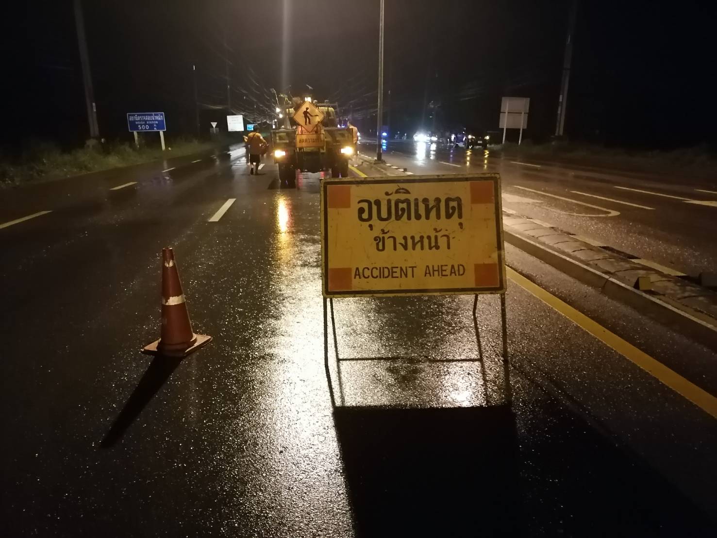 ทั้งนี้ กรมทางหลวงได้มีมาตรการแก้ไขที่ได้ดำเนินการร่วมกับตำรวจทางหลวงในการบังคับใช้กฎหมายอย่างต่อเนื่อง โดยเฉพาะการตรวจจับความเร็วยานพาหนะที่วิ่งบนทางหลวงพร้อมทั้งให้แขวงทางหลวงดำเนินการตรวจสอบความปลอดภัยถนน ซึ่งเป็นมาตรการที่สำคัญในการลดและป้องกันอุบัติเหตุที่อาจเกิดขึ้น กรมทางหลวง ขอความร่วมมือผู้ใช้ทางโปรดขับขี่ด้วยความระมัดระวังโดยเฉพาะอย่างยิ่งในช่วงฤดูฝน เพื่อความปลอดภัยของท่านและผู้ร่วมทางรวมถึงป้องกันและลดอุบัติเหตุให้ได้ประสิทธิผลอีกด้วย