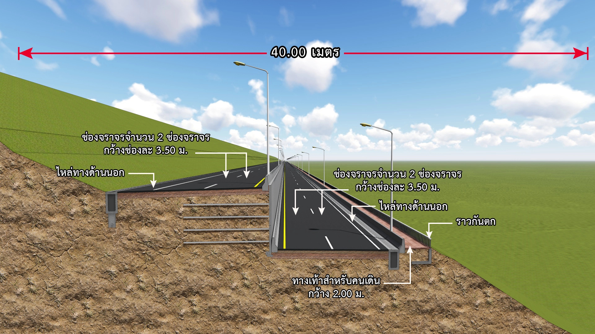 ??2. รูปแบบสะพานทางลอดสำหรับกลับรถ จำนวน 3 แห่ง 1) กม. 798+090.000 ความสูงช่องลอด 2.50 เมตร 2) กม. 800+330.000 บริเวณบ้านหาดเล็ก ความสูงช่องลอด 5.50 เมตร และ 3) กม. 800+047.500 ความสูงช่องลอด 5.50 เมตร