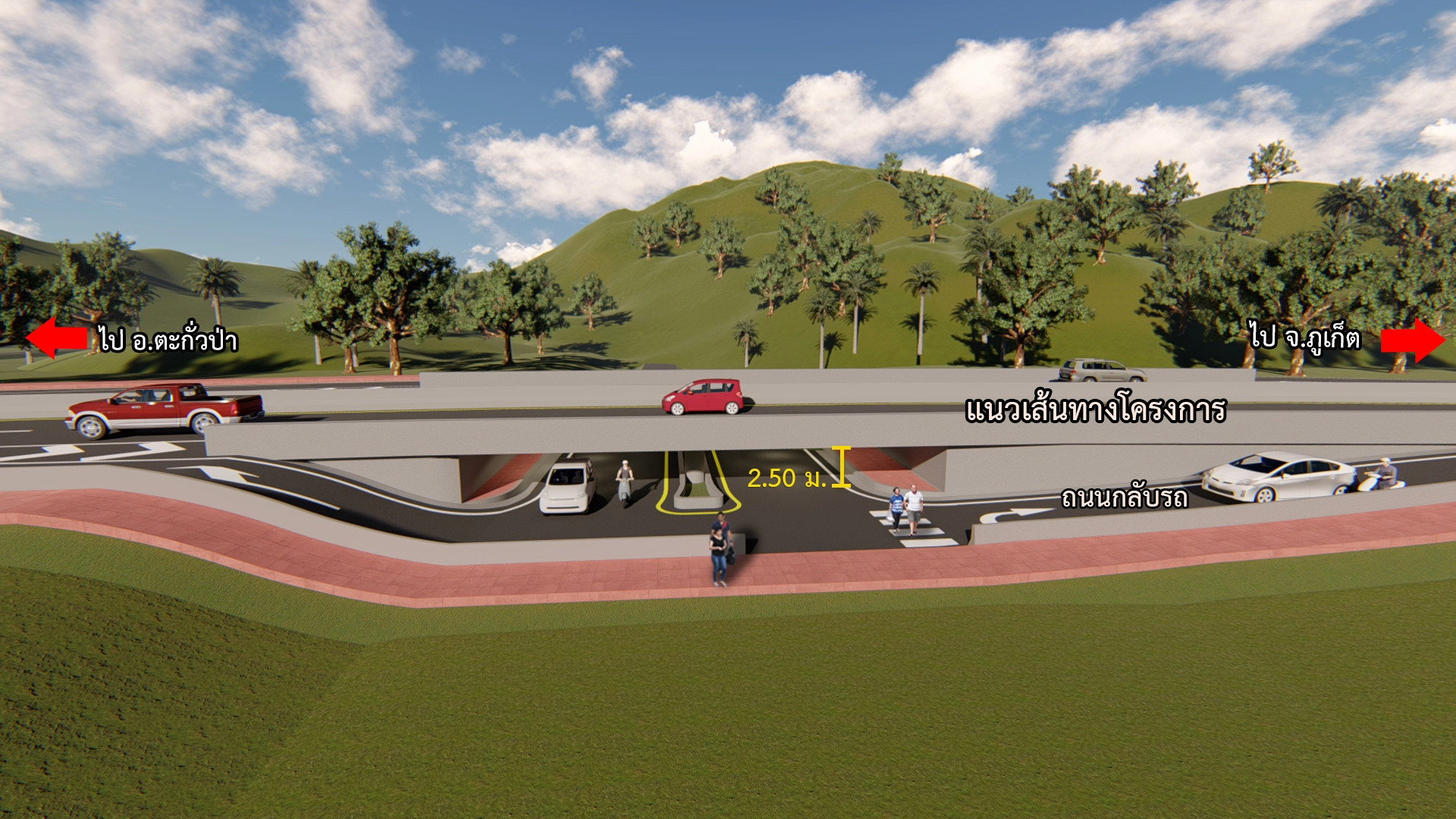 ??3. รูปแบบจุดกลับรถใต้สะพานข้าม กม.801+599.000 คลองเขาหลัก ความสูงช่องลอด 2 เมตร นอกจากนี้บริเวณบ้านบางหลาโอนได้ออกแบบทางลอดคนเดินให้นักท่องเที่ยว