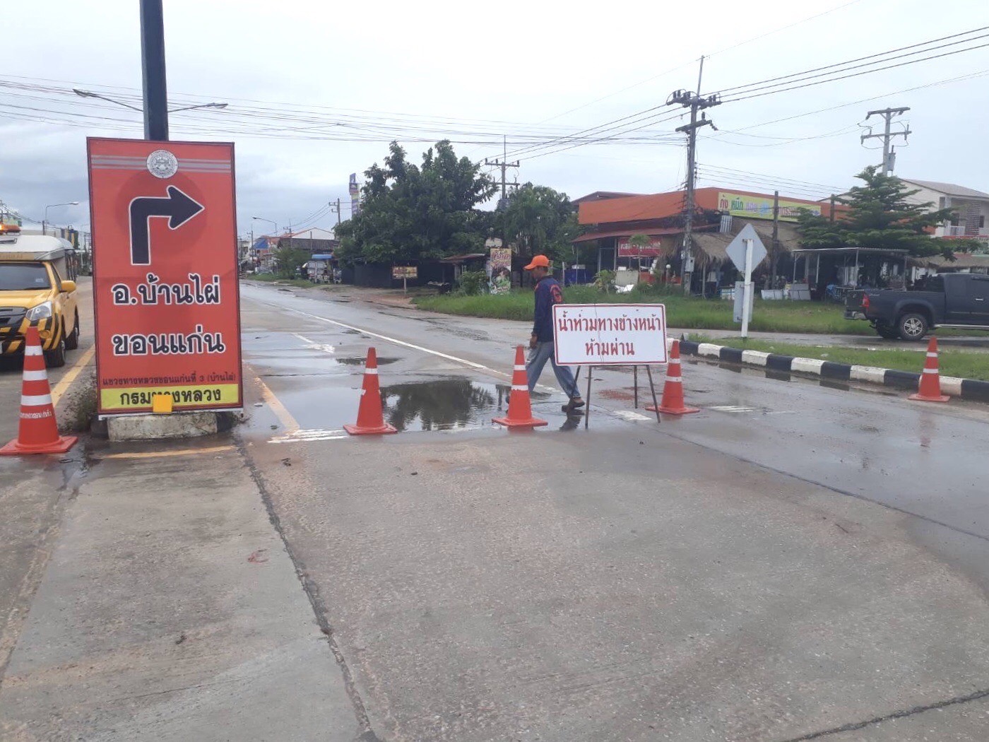 1. จังหวัดขอนแก่น ทางหลวงหมายเลข 229 บ้านไผ่ – มัญจาคีรี พื้นที่ อ.มัญจาคีรี ช่วง กม.ที่ 23+500 – 24+595 ด้านซ้ายทางและขวาทาง ระดับน้ำ 35 ซม. การจราจรผ่านไมได้ แนะนำทางเลี่ยงสี่แยกมัญจาคีรี แล้วเลี้ยวซ้ายออกไปบรรจบ ทล.229 ตอนมัญจาคีรี – ห้วยสามหมอ มีเจ้าหน้าที่คอยอำนวยความสะดวกด้านการจราจร