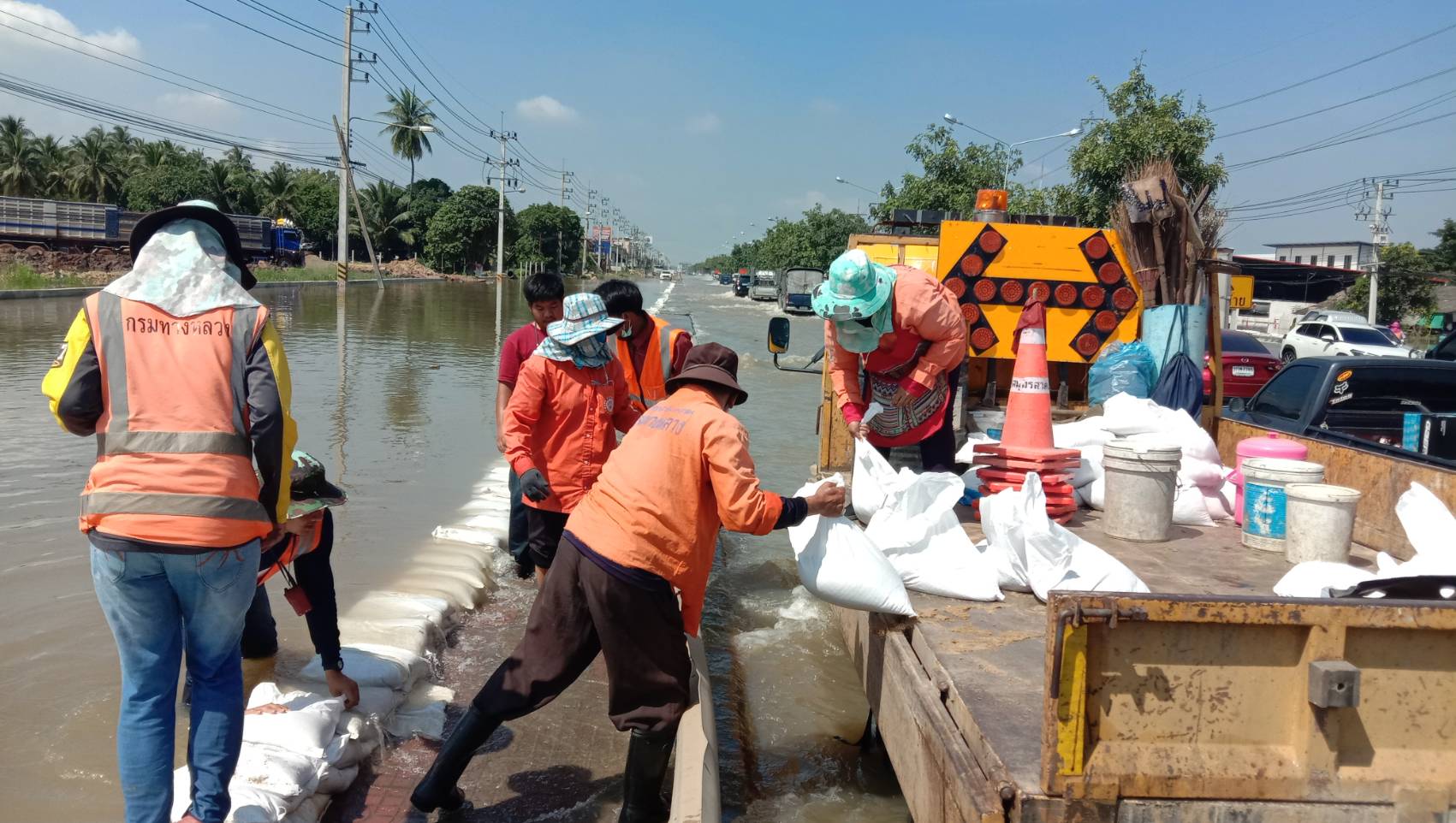 นายสราวุธ ทรงศิวิไล อธิบดีกรมทางหลวง เปิดเผยว่า กรมทางหลวงได้เร่งให้ความช่วยเหลือประชาชน จากสถานการณ์น้ำท่วมบนทางหลวงหมายเลข 338 ช่วง กม. 24+800 – 25+300 ระดับน้ำสูงประมาณ 10 – 30 ซม. เนื่องจากน้ำในแม่น้ำนครชัยศรี (แม่น้ำท่าจีน) เอ่อล้นเข้าท่วมแนวกระสอบทรายเดิมที่กั้นไว้ โดยดำเนินการเสริมคันกระสอบทรายและเร่งระบายน้ำโดยเร็วที่สุดเพื่อคืนผิวจราจร พร้อมร่วมบูรณาการกับหน่วยงานที่เกี่ยวข้องในการลงพื้นที่ เพื่อช่วยเหลือประชาชน ติดตั้งป้ายเตือนและอุปกรณ์อำนวยความปลอดภัยแก่ผู้ใช้เส้นทาง ในขณะที่บางพื้นที่ก็มีการล้างทำความสะอาดถนน ทางลอดใต้สะพานหลังจากน้ำลดลงบ้างแล้ว เพื่อบรรเทาความเดือดร้อนของประชาชนให้ได้รับความสะดวกปลอดภัยในการสัญจรโดยเร็วที่สุดอย่างต่อเนื่อง 24 ชั่วโมง ตามข้อสั่งการของ นายศักดิ์สยาม ชิดชอบ รัฐมนตรีว่าการกระทรวงคมนาคม ที่มีความห่วงใย จากสถานการณ์ฝนตกหนักในหลายพื้นที่ พร้อมทั้งเฝ้าระวังตลอด 24 ชั่วโมง เพื่อช่วยประชาชนอย่างทันท่วงที พร้อมกันนี้กรมทางหลวง ได้ทำการสรุปสถานการณ์อุทกภัยและดินสไลด์บนทางหลวง โดย สถานการณ์ประจำวันที่ 13 ตุลาคม 2565 เวลา 12.30 น. พบทางหลวงถูกน้ำท่วม/ดินสไลด์ ในพื้นที่ 19 จังหวัด ได้แก่ จ.ขอนแก่น, จ.ศรีสะเกษ, จ.สุรินทร์, จ.บุรีรัมย์, จ.นครราชสีมา ,จ.หนองบัวลำภู , จ.อุบลราชธานี, จ.ร้อยเอ็ด, จ.มหาสารคาม, จ.ยโสธร, จ.สระบุรี, จ.ลพบุรี, จ.สุพรรณบุรี, จ.อ่างทอง, จ.พระนครศรีอยุธยา, จ.สิงห์บุรี, จ.นครสวรรค์, จ.อุทัยธานี, และ จ.ปราจีนบุรี, จำนวน 45 สายทาง 65 แห่ง การจราจรผ่านไม่ได้ 30 แห่ง ดังนี้