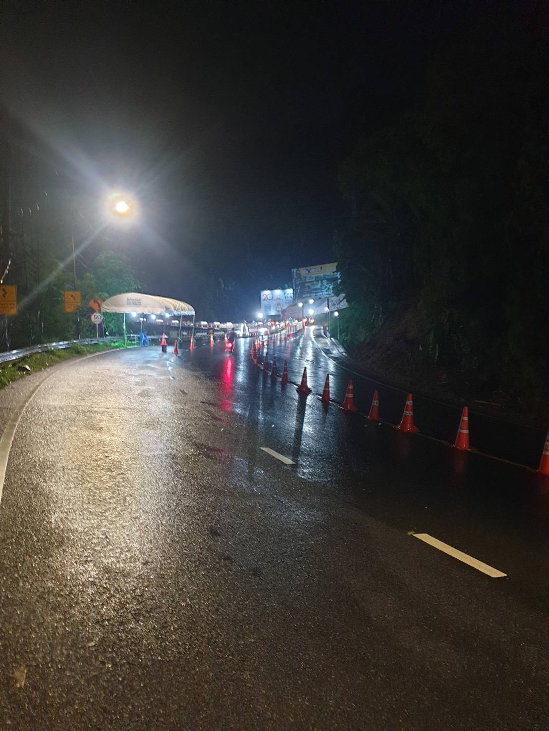 อธิบดีกรมทางหลวง กล่าวถึงความคืบหน้าในการเร่งรัดดำเนินการเปิดทางจราจรในพื้นที่ ล่าสุด จากผลทดสอบโครงสร้างของดิน สามารถเปิดจราจรสำหรับรถจักรยานยนต์ได้ โดยการวางแบริเออร์สีส้มบรรจุน้ำ ป้องกันอุบัติเหตุจากการใช้รถสัญจรผ่านจุดที่มีดินสไลด์ทรุดตัว ทำการปิดบ่อน้ำด้านบนเขาเพื่อป้องกันการซึมของน้ำใต้ดินที่จะกระทบกับโครงสร้างชั้นทาง และปูผ้าใบคลุมดิน ทับด้วยกระสอบเพื่อป้องกันดินที่จะสไลด์จากน้ำฝน ทั้งนี้ เพื่ออำนวยความสะดวกและปลอดภัยในการสัญจรเส้นทางดังกล่าว ปัจจุบันแขวงทางหลวงภูเก็ต ได้เปิดการจราจรให้เฉพาะรถจักรยานยนต์ สามารถวิ่งผ่านได้เท่านั้น ทั้ง 2 ทิศทาง (ไปกระทู้และไปป่าตอง)