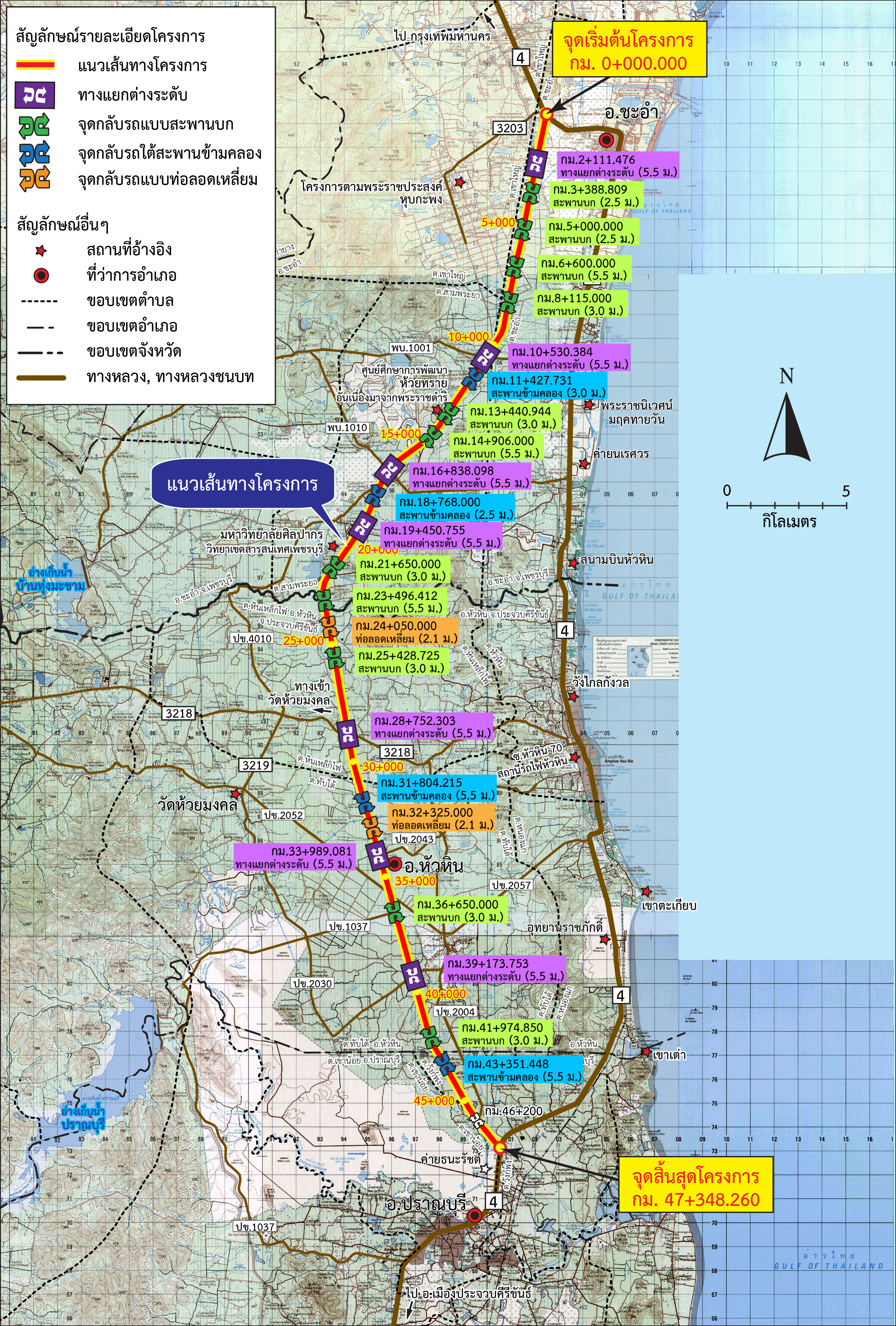 5) ทางแยกต่างระดับที่ว่าการอำเภอหัวหินที่ กม.33+989.081 (จุดตัดทางหลวงชนบท ปช.2043)