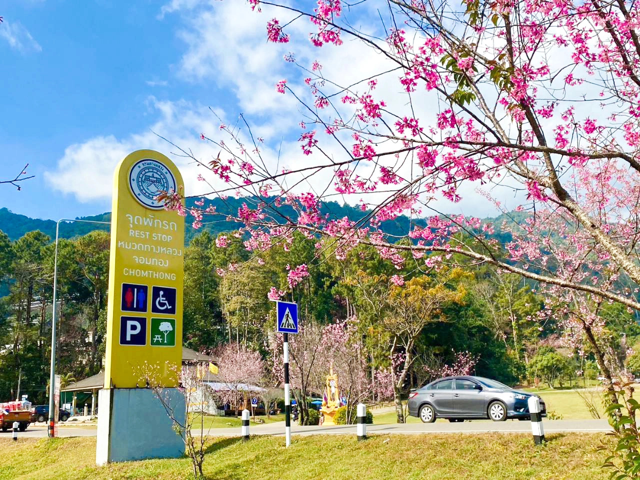 นายสราวุธ ทรงศิวิไล อธิบดีกรมทางหลวง เปิดเผยว่า สำนักงานทางหลวงที่ 1 โดยแขวงทางหลวงเชียงใหม่ที่ 1 ดำเนินการเตรียมพื้นที่บริเวณสำนักงานหมวดทางหลวงจอมทอง จังหวัดเชียงใหม่ ให้เป็นลานกางเต็นท์บริการนักท่องเที่ยวสำหรับชมความงามดอกพญาเสือโคร่งหรือซากุระเมืองไทย เพื่อเป็นการส่งเสริมการท่องเที่ยวตามแนวเส้นทางหลวง โดยเป็นนโยบายของ นายศักดิ์สยาม ชิดชอบ รัฐมนตรีว่าการกระทรวงคมนาคม ที่ต้องการให้หน่วยงานในสังกัดเตรียมความพร้อมในทุกมิติ เพื่อรองรับการท่องเที่ยว สร้างความเติบโตให้กับเศรษฐกิจของประเทศไทย กรมทางหลวงจึงอำนวยความสะดวกแก่ผู้เดินทาง โดยการจัดเตรียมความพร้อมด้านเส้นทางให้มีสภาพดี ทำความสะอาดป้ายเตือน ป้ายแนะนำ เพื่อให้ประชาชนเดินทางได้อย่างสะดวกและปลอดภัย รวมทั้งให้บริการสอบถามข้อมูลทางหลวง จุดจอดพักรถ ศาลานั่งพัก ห้องน้ำสาธารณะ และลานกางเต็นท์ฟรีสำหรับบริการผู้ใช้ทางและนักท่องเที่ยว สามารถรองรับได้ประมาณ 180 - 200 หลัง