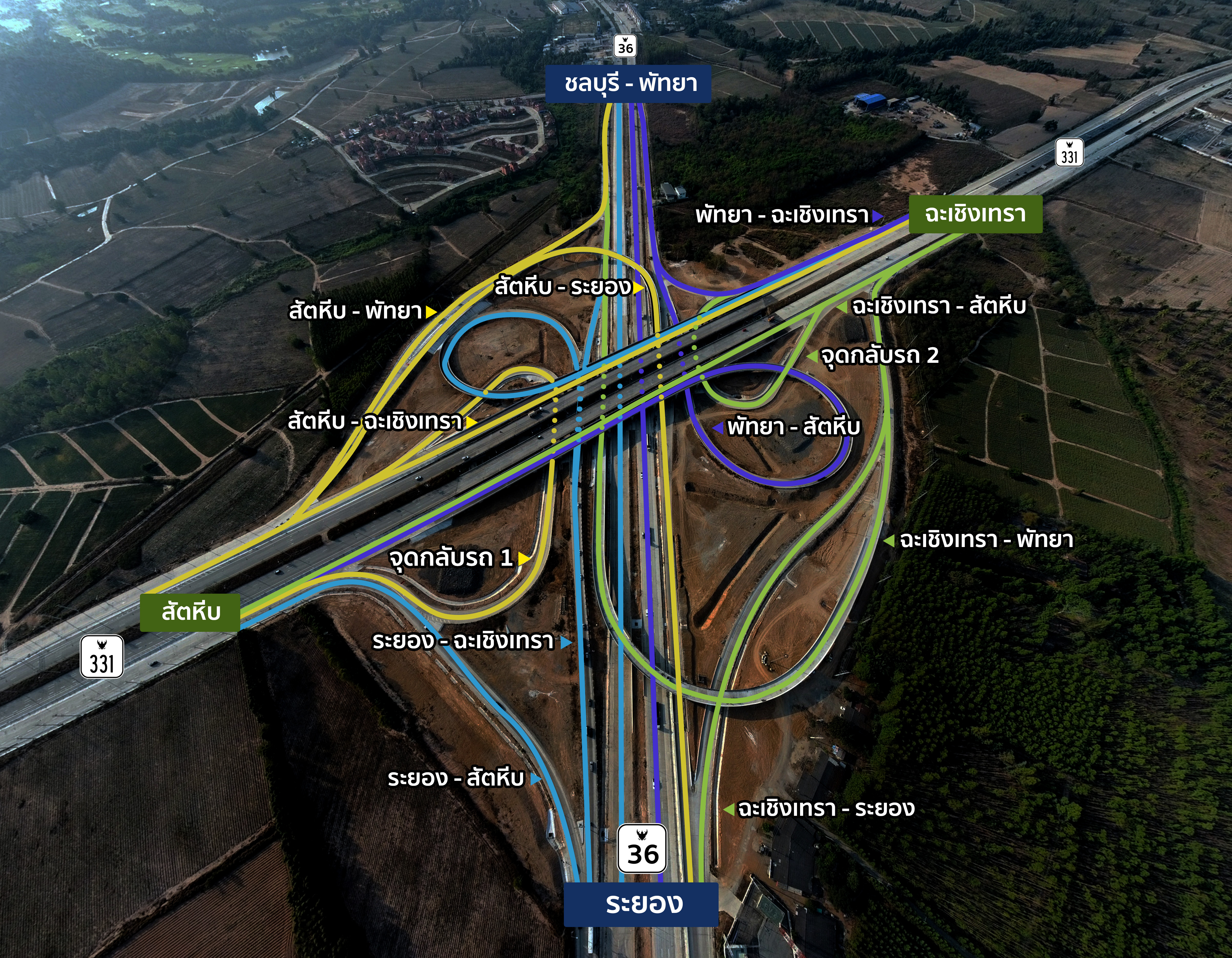 - ก่อสร้างสะพานต่างระดับบนทางหลวงหมายเลข 331 แบบ Directional Ramp ในทิศทางเลี้ยวขวา เข้าทางหลวงหมายเลข 36 เพื่อเดินทางจาก จ.ฉะเชิงเทรา ไปเมืองพัทยา จ.ชลบุรีและจาก อ.สัตหีบ จ.ชลบุรี ไปสู่ จ.ระยอง