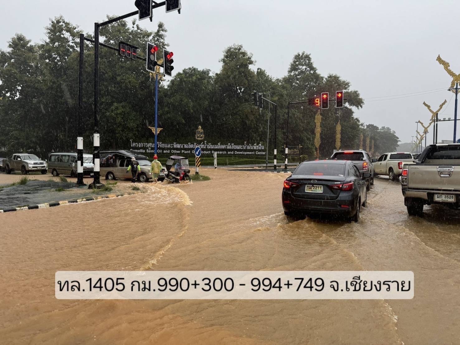 1.ทางหลวงหมายเลข 131 อ.เมืองเชียงราย ทางเลี่ยงเมืองเชียงราย กม.ที่ 8+700 – 9+100 ระดับน้ำ 100 ซม. การจราจรผ่านไม่ได้