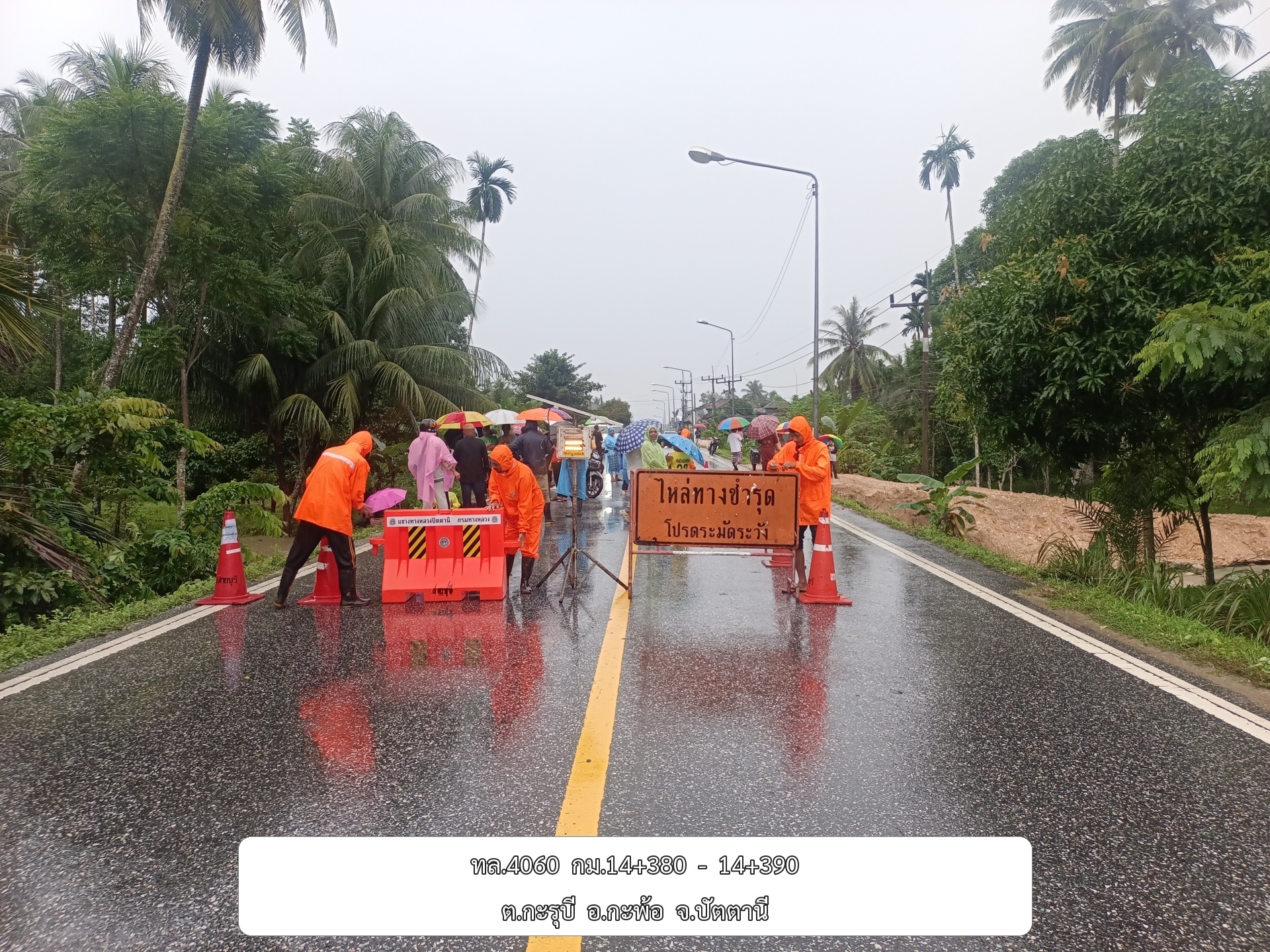 •ทล.42 นาจวก – ดอนยาง ช่วง กม.ที่ 78+800 - 79+200 อ.โคกโพธิ์ จ.ปัตตานี ระดับน้ำ 15 ซม.