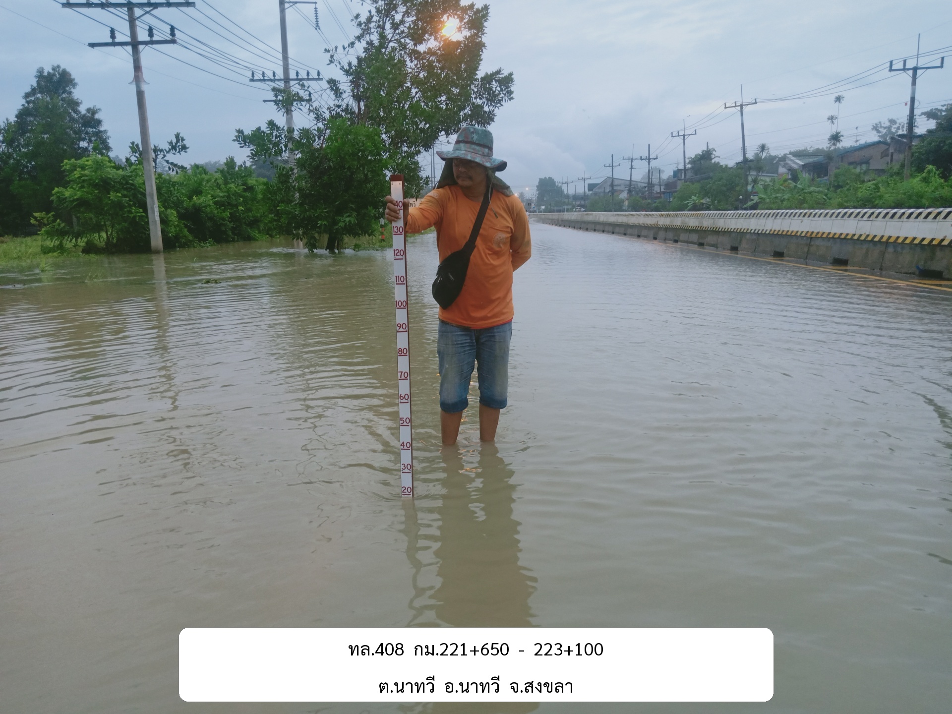ทล.4075 ตอหลัง – บ้านนอก ช่วง กม.ที่ 3+500 - 4+200 อ.ยะหริ่ง ระดับน้ำ 45 ซม.