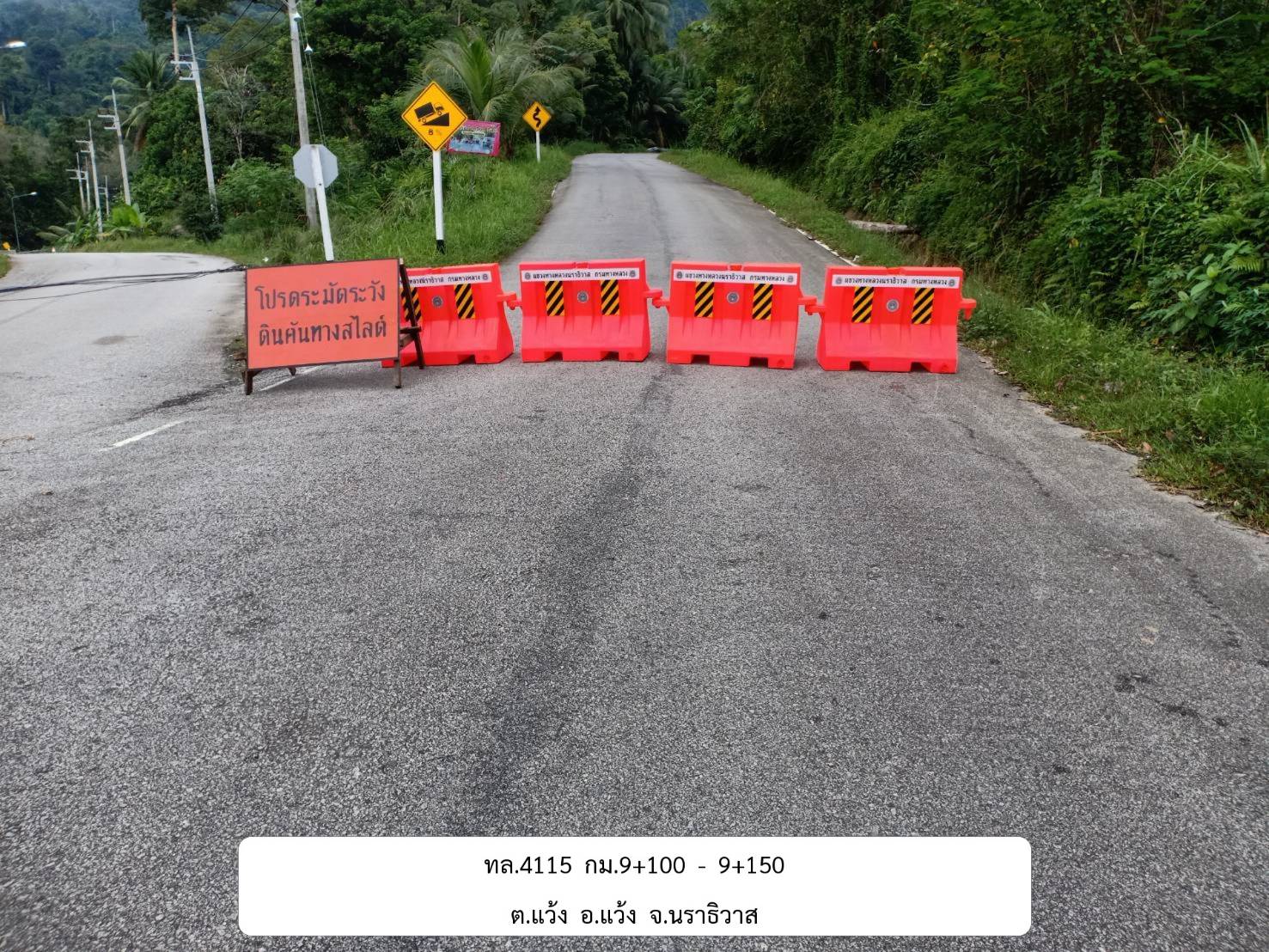 3. ทล.4115 สุคิริน - โต๊ะโม๊ะ ช่วง กม.ที่ 9+100 – 9+150 ดินโคลนถล่มทับผิวทาง