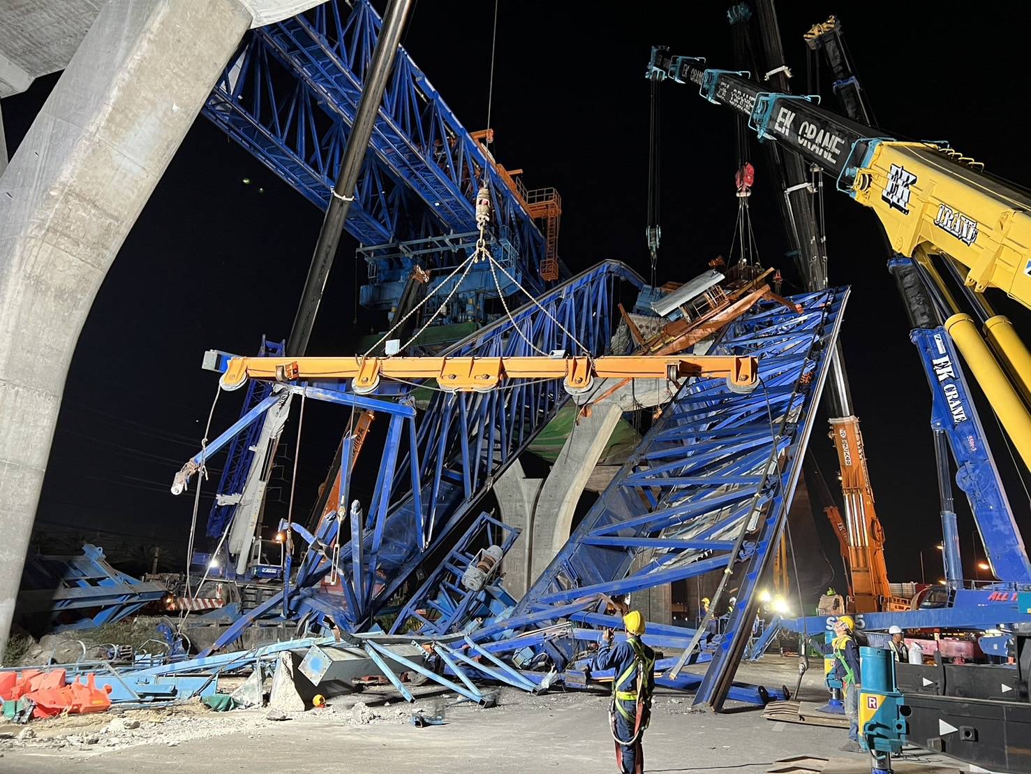 อธิบดีกรมทางหลวง จึงได้เน้นย้ำความปลอดภัยขั้นสูงสุด โดยให้เจ้าหน้าที่ทุกคนปฏิบัติงานภายใต้มาตรการด้านความปลอดภัยอย่างเคร่งครัด มีทีมเฝ้าระวังและรายงานผลตรวจวัดการเคลื่อนตัวของโครงสร้างเหล็กอย่างต่อเนื่อง มีการสื่อสารประสานงานระหว่างเจ้าหน้าที่ปฏิบัติงานบนที่สูงและภาคพื้นดิน พร้อมจัดเตรียมเครื่องมือและอุปกรณ์ Safety เพื่อป้องกันเหตุซ้ำ โดยได้รับความร่วมมือจากหน่วยงาน ปภ.สมุทรปราการ และมูลนิธิการกุศลสมุทรสาคร เฝ้าระวังเหตุตลอด 24 ชั่วโมง การดำเนินการจึงอาจส่งผลกระทบต่อการจราจรบางส่วน กรมทางหลวงจึงขออภัยในความไม่สะดวก พร้อมทั้งเปิดช่องทางพิเศษ โดยเจ้าหน้าที่ตำรวจได้จัดกำลังพลอำนวยความสะดวก เร่งระบายรถ และแก้ไขปัญหาการจราจรติดขัด