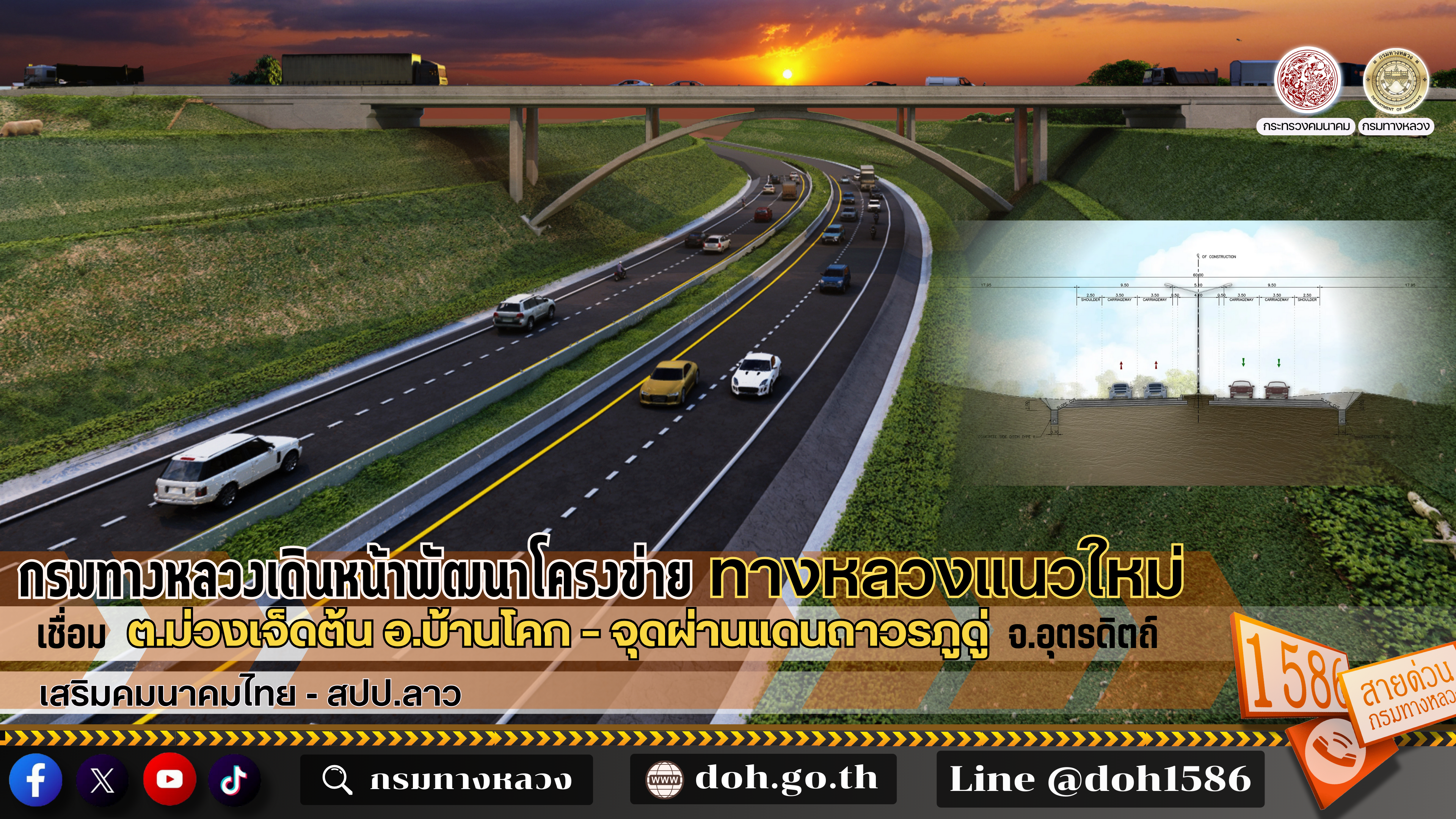 กรมทางหลวงเดินหน้าพัฒนาโครงข่ายทางหลวงแนวใหม่ เชื่อม ต.ม่วงเจ็ดต้น อ.บ้านโคก – จุดผ่านแดนถาวรภูดู่ จ.อุตรดิตถ์ เสริมคมนาคมไทย - สปป.ลาว