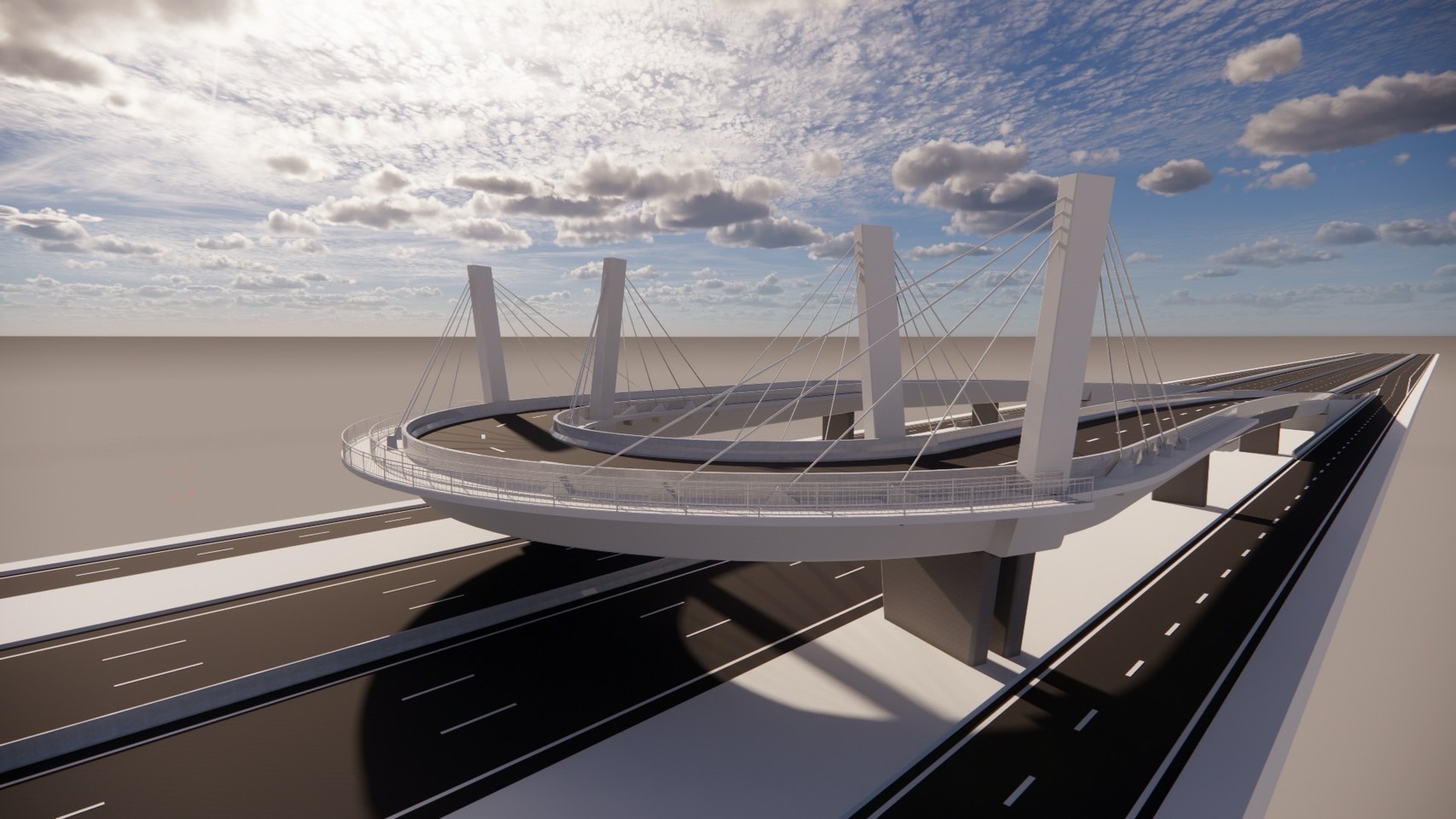 • สะพาน: เป็นสะพานกลับรถแบบเคเบิ้ล มีลักษณะโค้ง และมีความยาวรวมประมาณ 330 เมตร