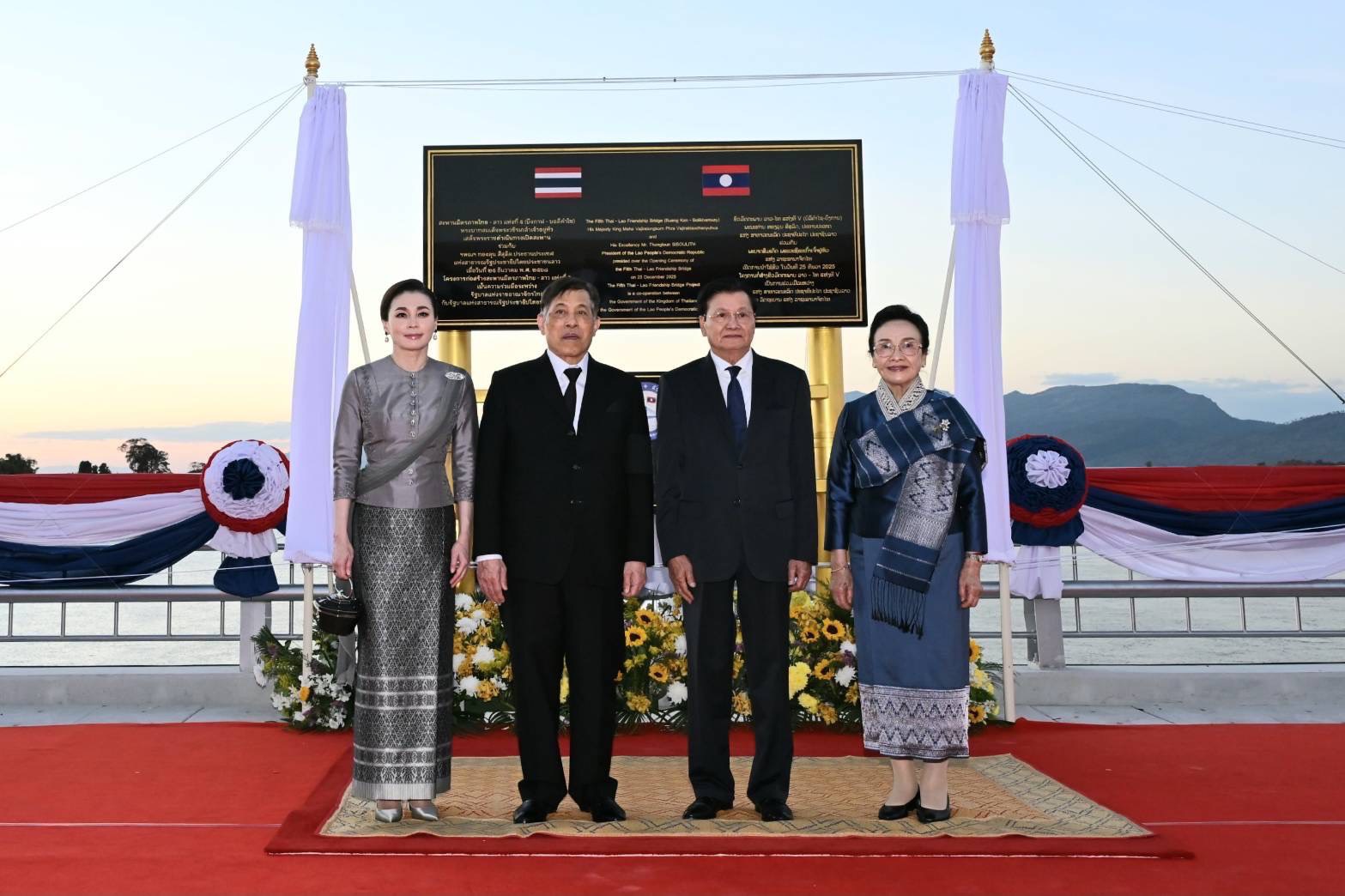 ข้อมูลข่าว : วันที่ ๒๕ ธันวาคม ๒๕๖๘ พระบาทสมเด็จพระเจ้าอยู่หัว และสมเด็จพระนางเจ้า ฯ พระบรมราชินี เสด็จพระราชดำเนินไปทรงเป็นองค์ประธานประกอบพิธีเปิดสะพานมิตรภาพไทย - ลาว แห่งที่ ๕ (บึงกาฬ - บอลิคำไซ) ร่วมกับ นายทองลุน สีสุลิด ประธานประเทศแห่งสาธารณรัฐประชาธิปไตยประชาชนลาว และนางนาลี สีสุลิด ภริยา ณ อำเภอเมืองบึงกาฬ จังหวัดบึงกาฬ
