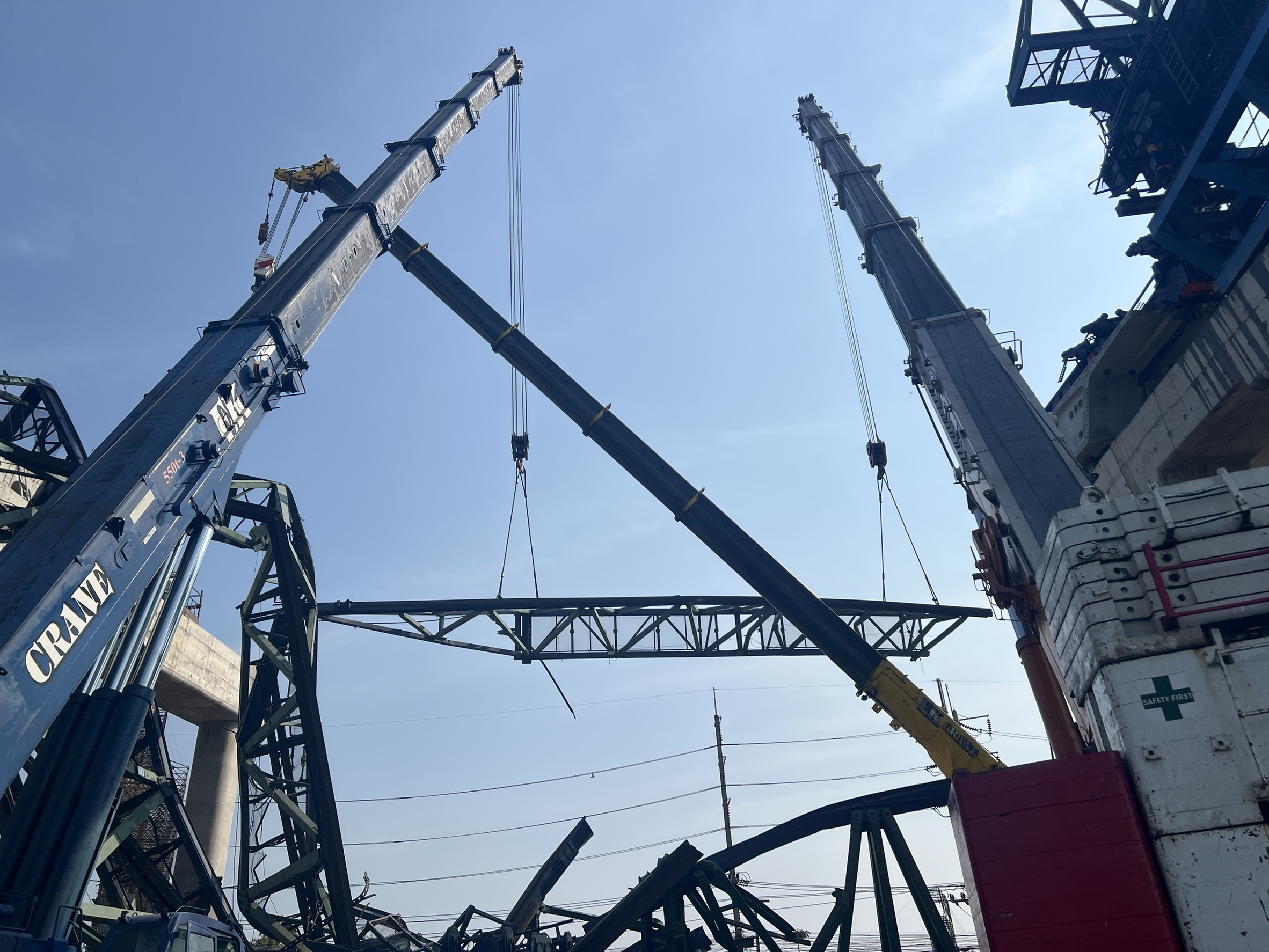 สำหรับความคืบหน้าล่าสุด (20 มกราคม 2569) ทีมวิศวกรของกรมทางหลวง พร้อมด้วยผู้เชี่ยวชาญจาก วสท. และผู้รับจ้าง ได้ระดมเครื่องจักรหนักเข้าดำเนินการยกและตัดแยกโครงเหล็กส่วนหลัก (Main Truss) ลงสู่พื้นดินได้สำเร็จครบถ้วนในทุกส่วนแล้ว ภายใต้การกำกับดูแลความปลอดภัยอย่างใกล้ชิดของคณะทำงานร่วม โดยขณะนี้ได้แบ่งชุดปฏิบัติงานออกเป็น 2 ชุด เพื่อเร่งตัดย่อยชิ้นส่วนเหล็กด้านล่างให้มีขนาดเหมาะสมต่อการขนย้ายออกจากพื้นที่ ซึ่งได้รับความร่วมมือจากตำรวจทางหลวงและหน่วยงานในพื้นที่ในการอำนวยความสะดวกด้านการจราจรเพื่อลดผลกระทบต่อผู้ใช้ทางอย่างต่อเนื่อง อย่างไรก็ตาม เมื่อเวลาประมาณ 11.00 น. ได้เกิดเหตุเพลิงไหม้ โดยเหตุเกิดจาก มีประกายไฟจากงานตัดโครงเหล็กด้วยแก๊สใกล้บริเวณรถกระบะที่ติดอยู่ในซากมีแผ่นสะพานทับอยู่ ซึ่งทราบภายหลังว่าเป็นรถห้องเย็นภายในมีวัสดุโฟมชนิดที่ลามไฟได้ง่าย โดยทีมกู้ภัยที่ประจำหน้างานได้เร่งใช้ถังดังเพลิงจำนวน 4 ถังเข้าระงับเหตุเบื้องต้น ก่อนที่ทีมดับเพลิงจะเข้าระงับเหตุ และควบคุมเพลิงไว้ได้ในเวลาประมาณ 11.30 น. โดยไม่พบผู้ได้รับบาดเจ็บหรือเสียชีวิต ทั้งนี้เพื่อป้องกันเหตุเกิดซ้ำ ได้มีการป้องกันโดยฉีดพรมน้ำโดยรอบจุดที่เสี่ยงเกิดประกายไฟระหว่างทำงานตัดย่อยโครงเหล็กในพื้นที่ดังกล่าว