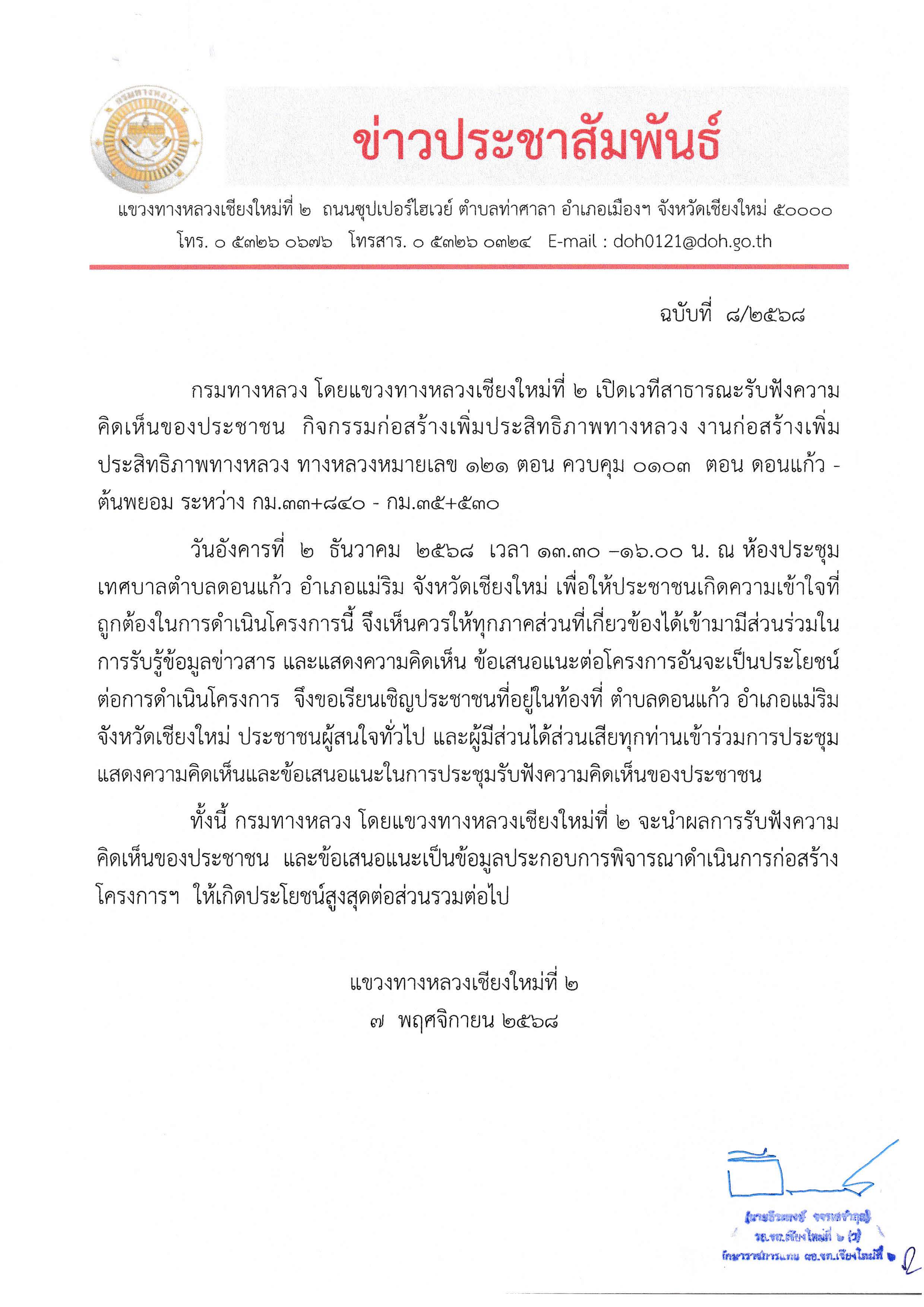 ข้อมูลข่าว : เปิดเวทีสาธารณะรับฟังความคิดเห็นของประชาชน ทล.121