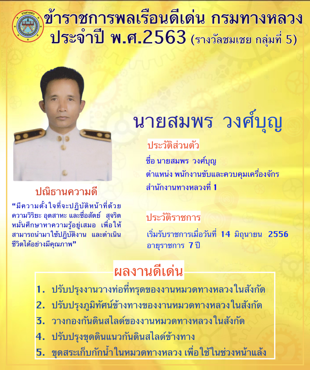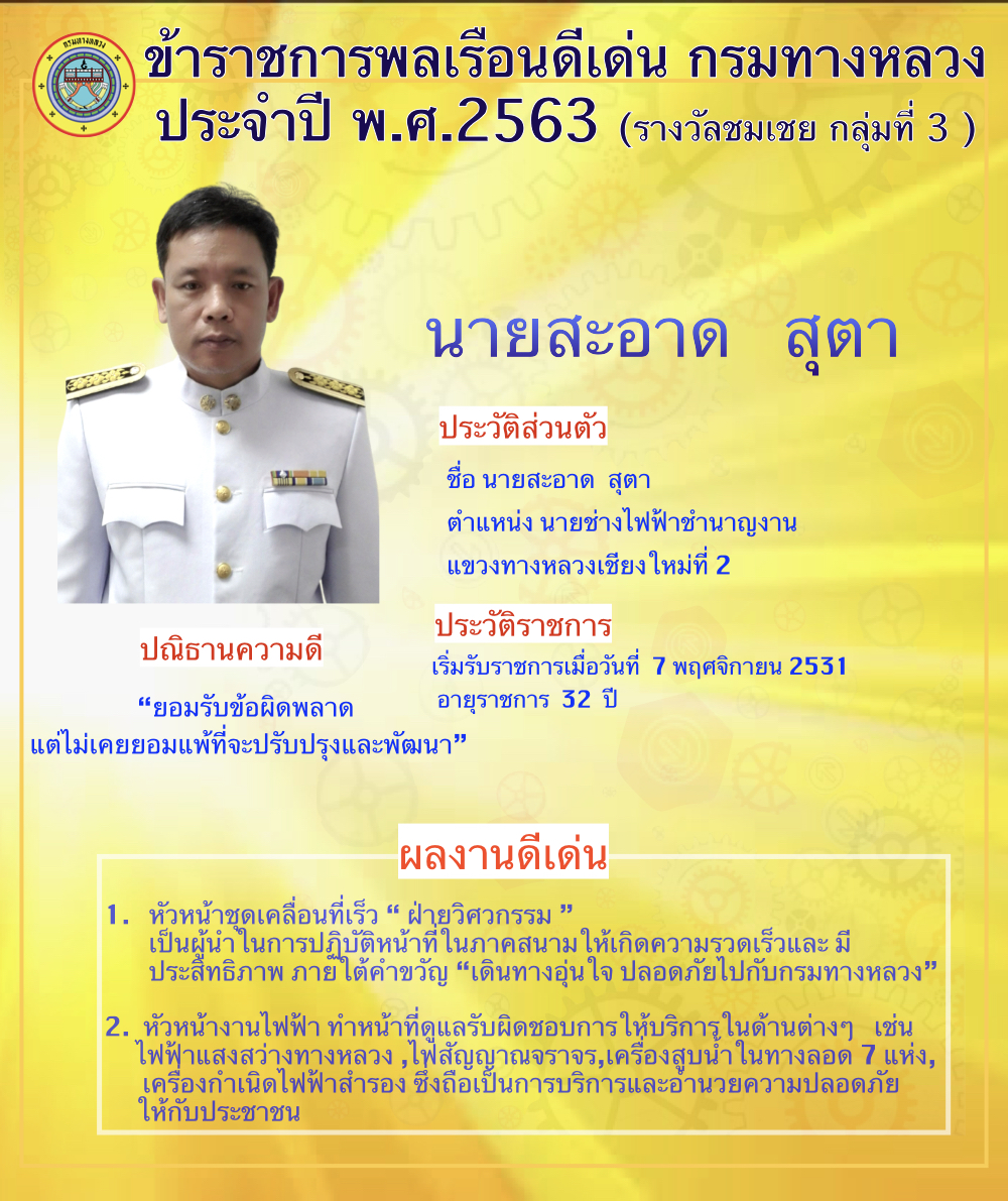 ยกย่องเชิดชูบุคลากรในสังกัดผู้ที่ประพฤติดีหรือผู้ที่มีความประพฤติซื่อสัตย์สุจริตหรือผู้ที่ได้รับรางวัลข้าราชการพลเรือนดีเด่น