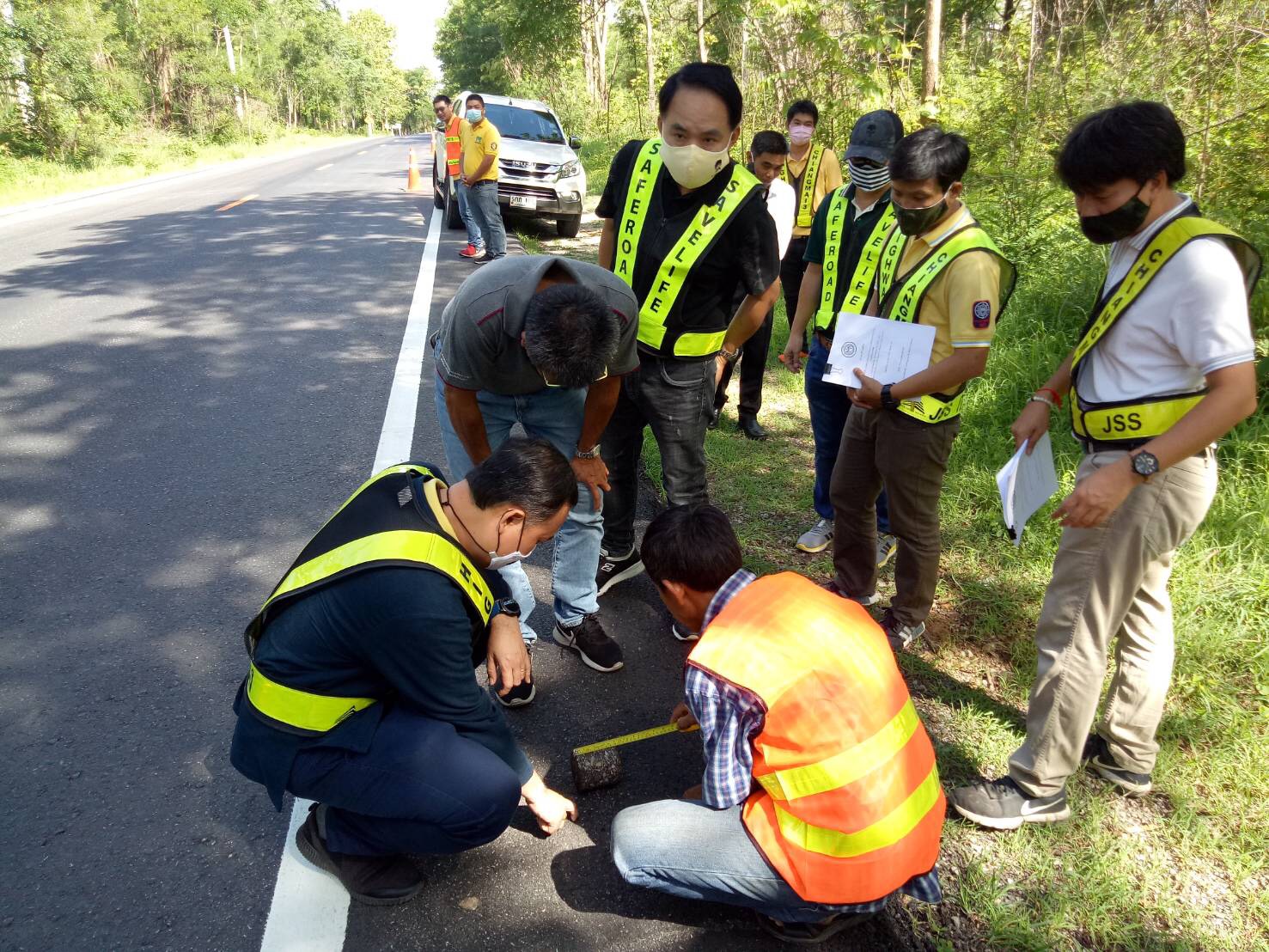 ตรวจงาน งานปรับปรุงความปลอดภัยบริเวณหน้าโรงเรียน ทล. 107 ตอน หัวโท - ล้องอ้อ ตอน 2 ระหว่าง กม.135+100 - กม.136+100