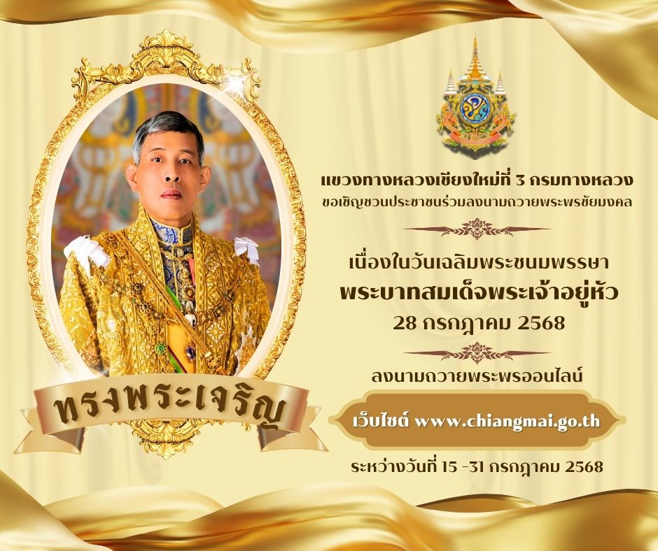 55 18/07/2568 ขอเชิญชวนประชาชนร่วมลงนามถวายพระพรชัยมงคลเนื่องในวันเฉลิมพระชนมพรรษา พระบาทสมเด็จพระเจ้าอยู่หัว 28 กรกฎาคม 2568
