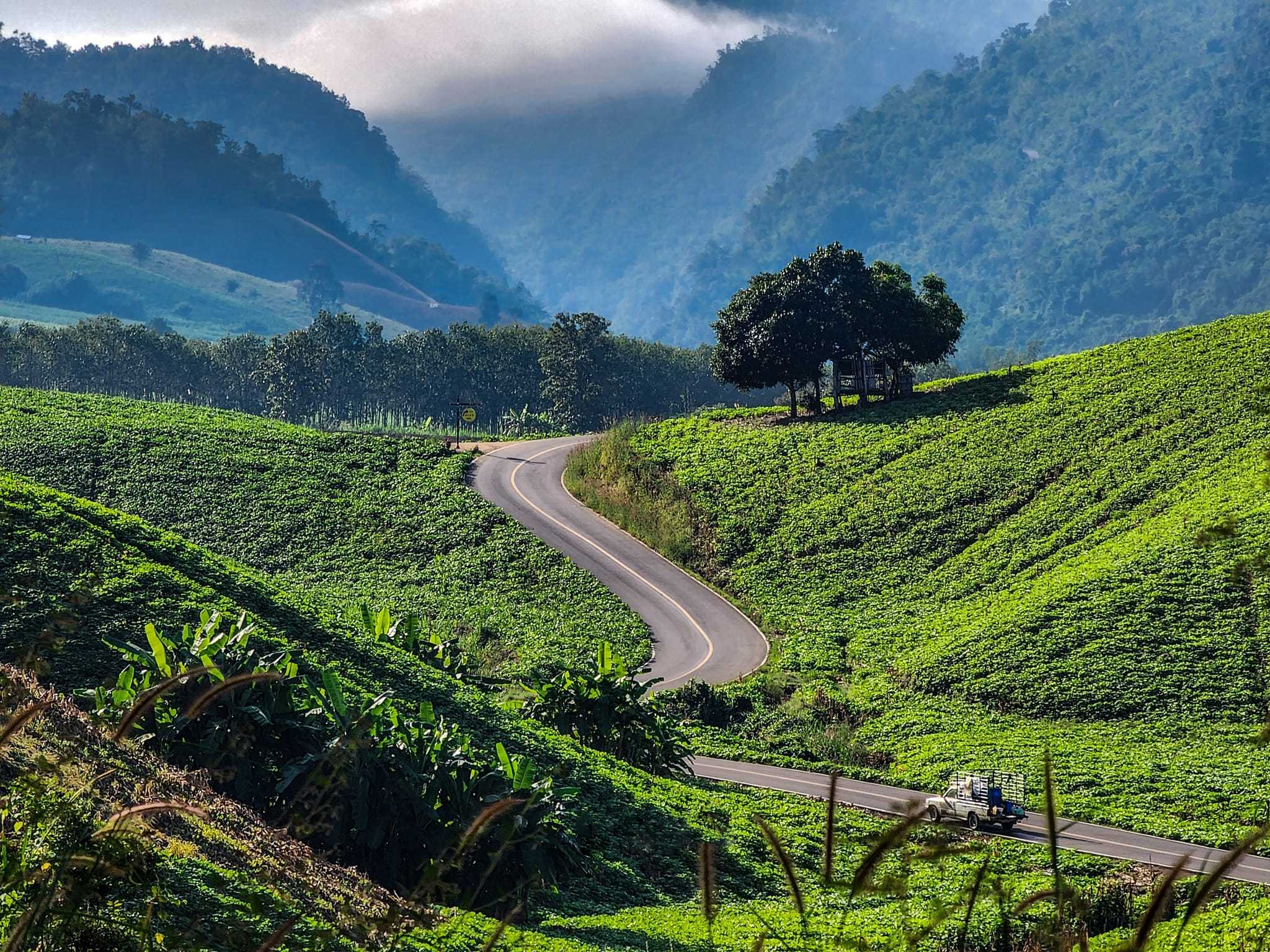 กรมทางหลวง พาเที่ยวโค้ง 33 บ้านแม่โกนเกน อ.แม่สอด จังหวัดตาก ถนนโค้งสวยติดชายแดนเมียนมา