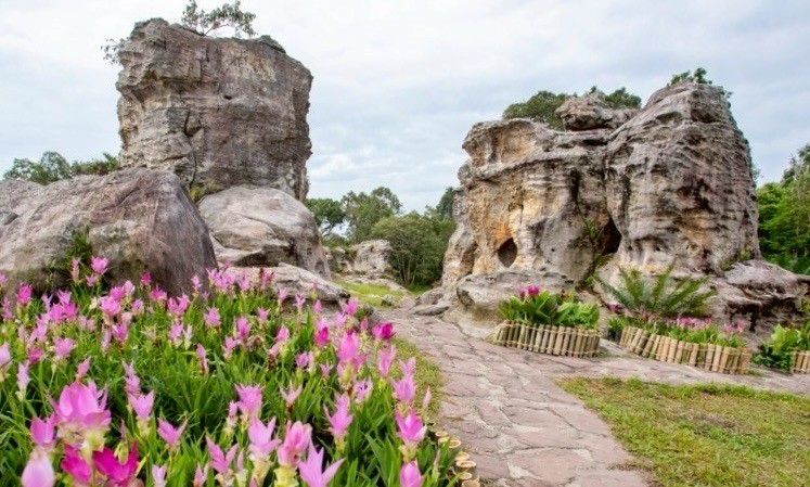 ร่วมสัมผัสสายหมอกยามเช้า และเก็บภาพเสน่ห์ “ราชินีแห่งป่าฝน” เป็นดอกไม้ประจำฤดูฝนที่ผลิบานสะพรั่งท่ามกลางความชุ่มฉ่ำของสายฝนในช่วงเดือน มิถุนายน – สิงหาคม ของทุกปี ดอกกระเจียวจะบานเต็มทุ่ง สร้างความประทับใจแก่นักท่องเที่ยวที่เข้ามาเก็บภาพบรรยากาศในช่วงหน้าฝนที่จะได้สัมผัสกับความงดงามของธรรมชาติ ท่ามกลางอากาศบริสุทธิ์ ชมทุ่งดอกกระเจียวที่บานสะพรั่งทั่วผืนหญ้าสีเขียวอ่อนสลับกับแนวหินรูปร่างแปลกตา เหมาะแก่การพักผ่อน ถ่ายภาพ และเรียนรู้ระบบนิเวศของผืนป่าธรรมชาติอย่างใกล้ชิด จุดเช็คอินสำหรับผู้ต้องการสัมผัสความงาม ของธรรมชาติมีอยู่ 2 จุด ได้แก่ อุทยานแห่งชาติป่าหินงาม นักท่องเที่ยวสามารถเที่ยวชมดอกกระเจียวแบบใกล้ชิดธรรมชาติในอุทยานได้สะดวกด้วยรถราง ชมวิวทุ่งดอกกระเจียว ลานหินงาม ผาสุดแผ่นดิน สัมผัสความงามกันอย่างเต็มอิ่มทุกมุมได้โดยเดินทางจากกรุงเทพฯ บนทางหลวงหมายเลข 1 ผ่าน จ.สระบุรีจนถึงบ้านพุแค เลี้ยวขวาเข้าทางหลวงหมายเลข 21 จนถึง อ.ชัยบาดาล วิ่งเข้าทางหลวงหมายเลข 205 ผ่าน อ.ลำสนธิ จนถึงสามแยกเทพสถิตให้เลี้ยวซ้าย ไปตามทางหลวงหมายเลข 2354 ระยะทางประมาณ 17 กม. แล้วเลี้ยวซ้ายไปตามถนนลาดยางระยะทางประมาณ 13 กม. ก็จะถึงที่ทำการอุทยานแห่งชาติป่าหินงาม และ อุทยานแห่งชาติไทรทอง นักท่องเที่ยวชมเส้นทางศึกษาธรรมชาติ ทุ่งดอกกระเจียวผืนใหญ่ น้ำตกไทรทอง ผาหำหด ได้โดยนั่งรถกระบะของอุทยานเข้าไปภายในอุทยานแล้วเดินเท้าต่อไป ยังจุดชมธรรมชาติ ทั้งนี้ทางอุทยานยังจัดจุดกางเต้นท์ไว้ให้นักท่องเที่ยวที่ต้องการใกล้ชิดธรรมชาติอีกด้วย โดยเดินทางจากกรุงเทพฯ บนทางหลวงหมายเลข 1 (ถ.พหลโยธิน) เข้าสู่ทางหลวงหมายเลข 2 (ถ.มิตรภาพ) ผ่านจังหวัดสระบุรี เข้าสู่ทางหลวงพิเศษหมายเลข 6 สายบางปะอิน – นครราชสีมา จุดทางออกสีคิ้ว เข้าสู่ทางหลวงหมายเลข 201 ถ.สีคิ้ว - ชัยภูมิ ที่กม.5+500 จนถึงสามแยกหนองบัวใหญ่ อ.จัตุรัส ให้เลี้ยวซ้าย วิ่งต่อไปยังทางหลวงหมายเลข 2170 ถึง อ.หนองบัวระเหว ให้เลี้ยวซ้ายเข้าสู่ทางหลวงหมายเลข 225 ระยะทางประมาณ 26 กม. จากนั้นวิ่งต่อไปจนถึงสามแยกบ้านท่าโป่ง ระยะทางประมาณ 32 กม. และขับต่อไปอีกประมาณ 8 กม. จะถึงอุทยานแห่งชาติไทรทอง