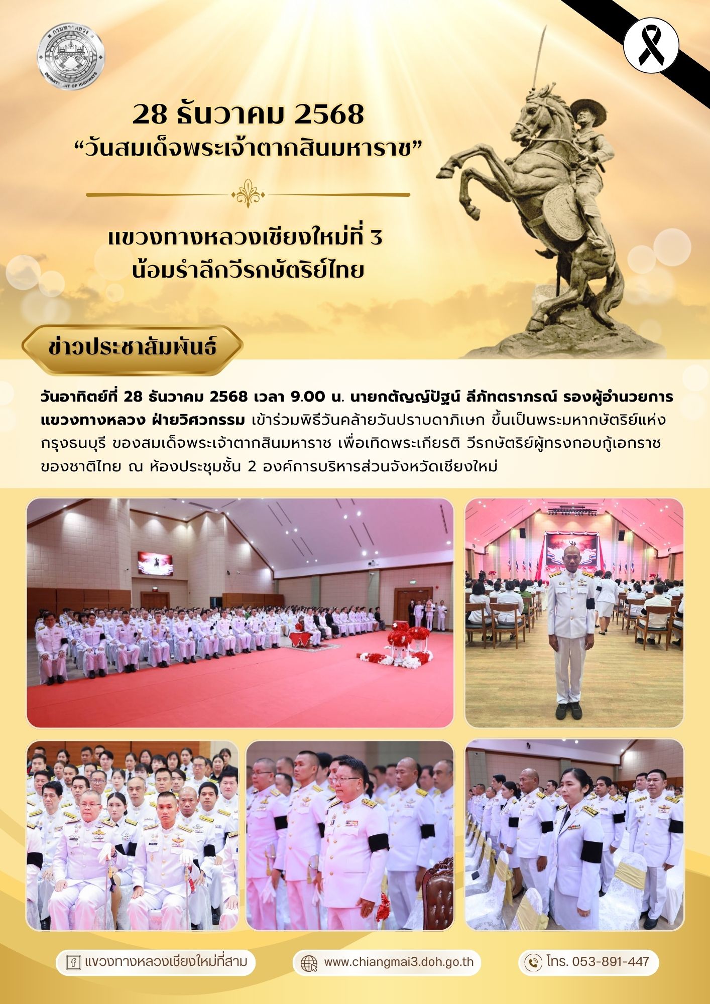 เข้าร่วมพิธีวันคล้ายวันปราบดาภิเษก ขึ้นเป็นพระมหากษัตริย์แห่งกรุงธนบุรี ของสมเด็จพระเจ้าตากสินมหาราช เพื่อเทิดพระเกียรติ วีรกษัตริย์ผู้ทรงกอบกู้เอกราชของชาติไทย