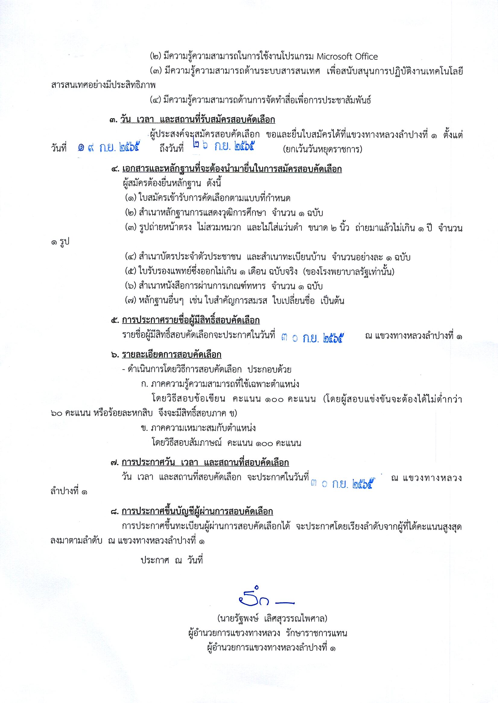 139 23/09/2565 แขวงทางหลวงลำปางที่ 1 ขยายเวลาการรับสมัครบุคคลเพื่อสอบคัดเลือกเป็นลูกจ้างชั่วคราว ตำแหน่ง คนงาน ทำหน้าที่เจ้าหน้าที่พัสดุและสัญญา จำนวน 1 อัตรา