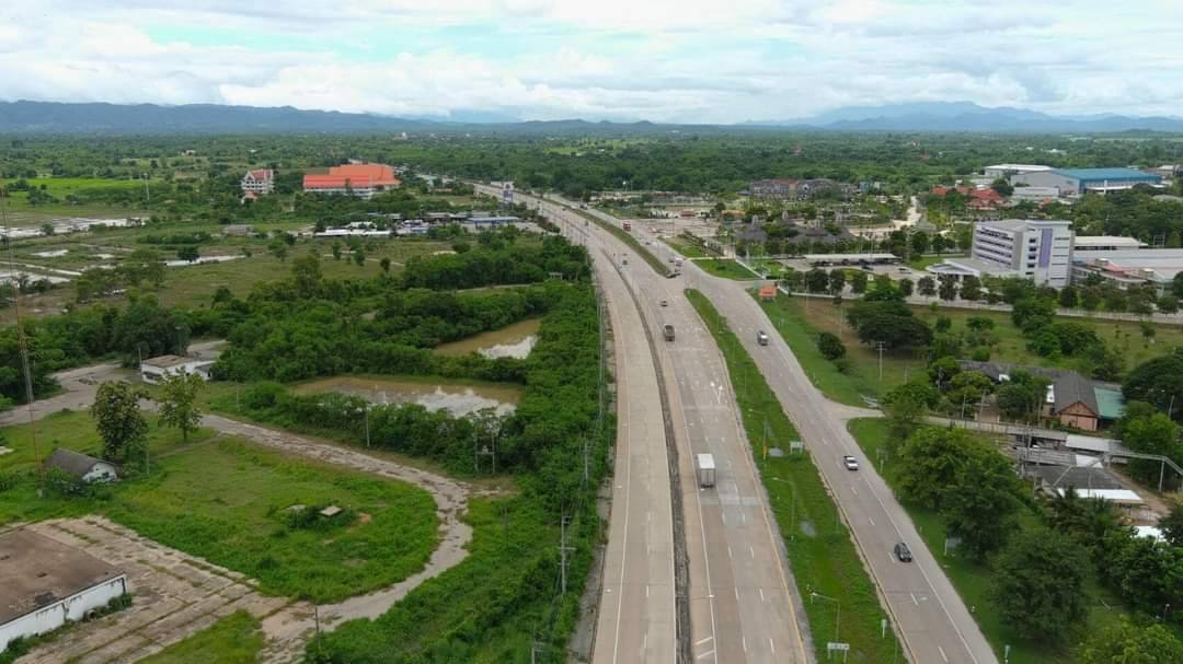 ภาพถ่ายทางอากาศสถานการณ์หลังน้ำท่วม บริเวณทางหลวงหมายเลข 1 ตอน สบปราบ - เกาะคา ระหว่าง กม.689+000 - กม.691+231