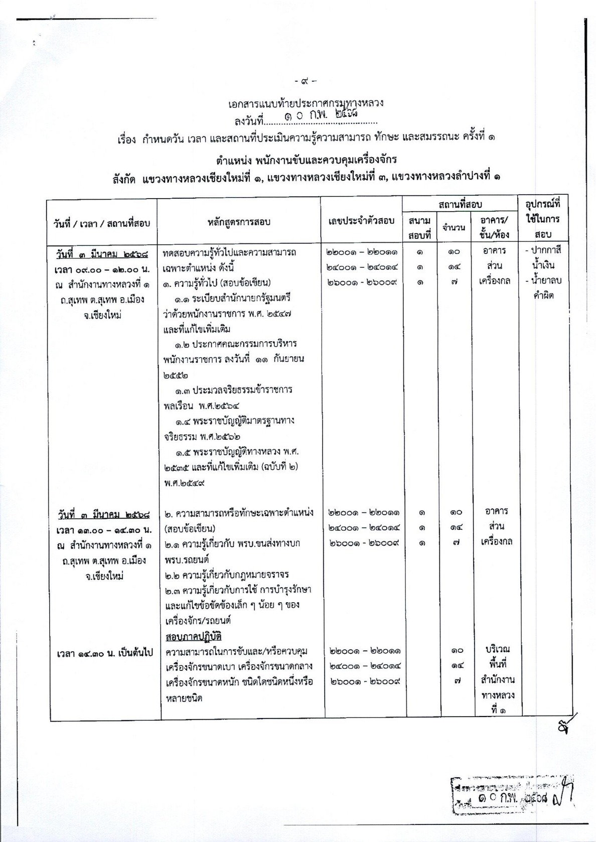 ระกาศรายชื่อผู้มีสิทธิเข้ารับการประเมินความรู้ความสามารถ ทักษะและสมรรถนะ ครั้งที่ 1