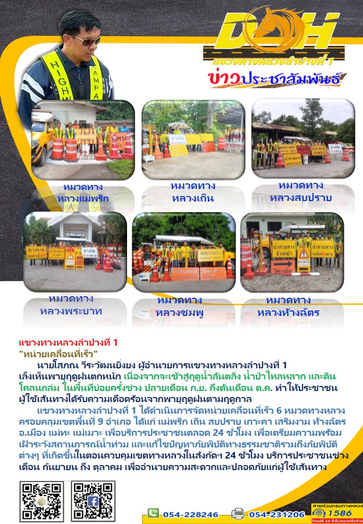 70 27/05/2567 ประชาสัมพันธ์การปิดและเบี่ยงช่องจราจรชั่วคราว