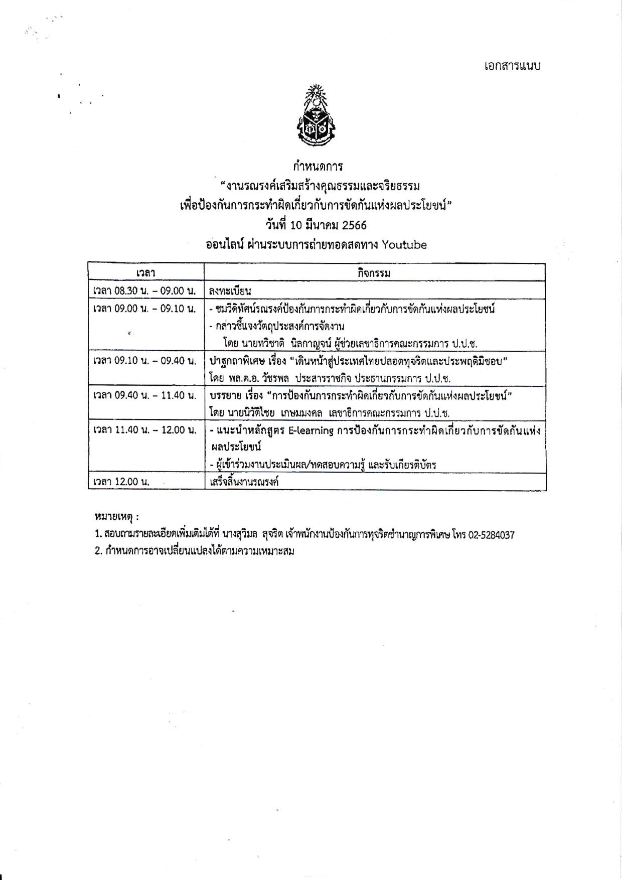 ขอเชิญรับชมการถ่ายทอดสด "งานรณรงค์เสริมสร้างคุณธรรมและจริยธรรมเพื่อป้องกันการกระทำผิดเกี่ยวกับการขัดกันแห่งผลประโยชน์" ผ่านระบบออนไลน์ทาง Youtube : GoodGovernance NACC