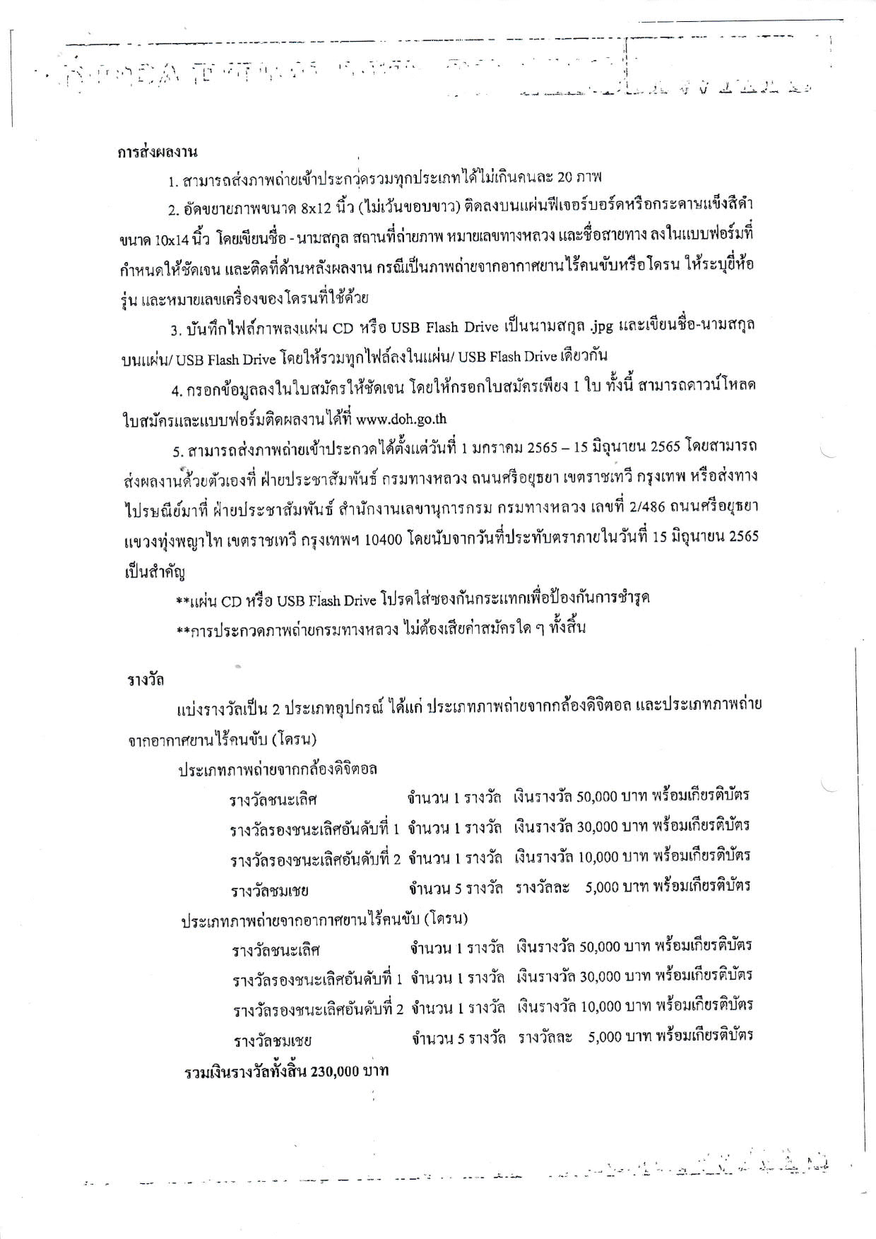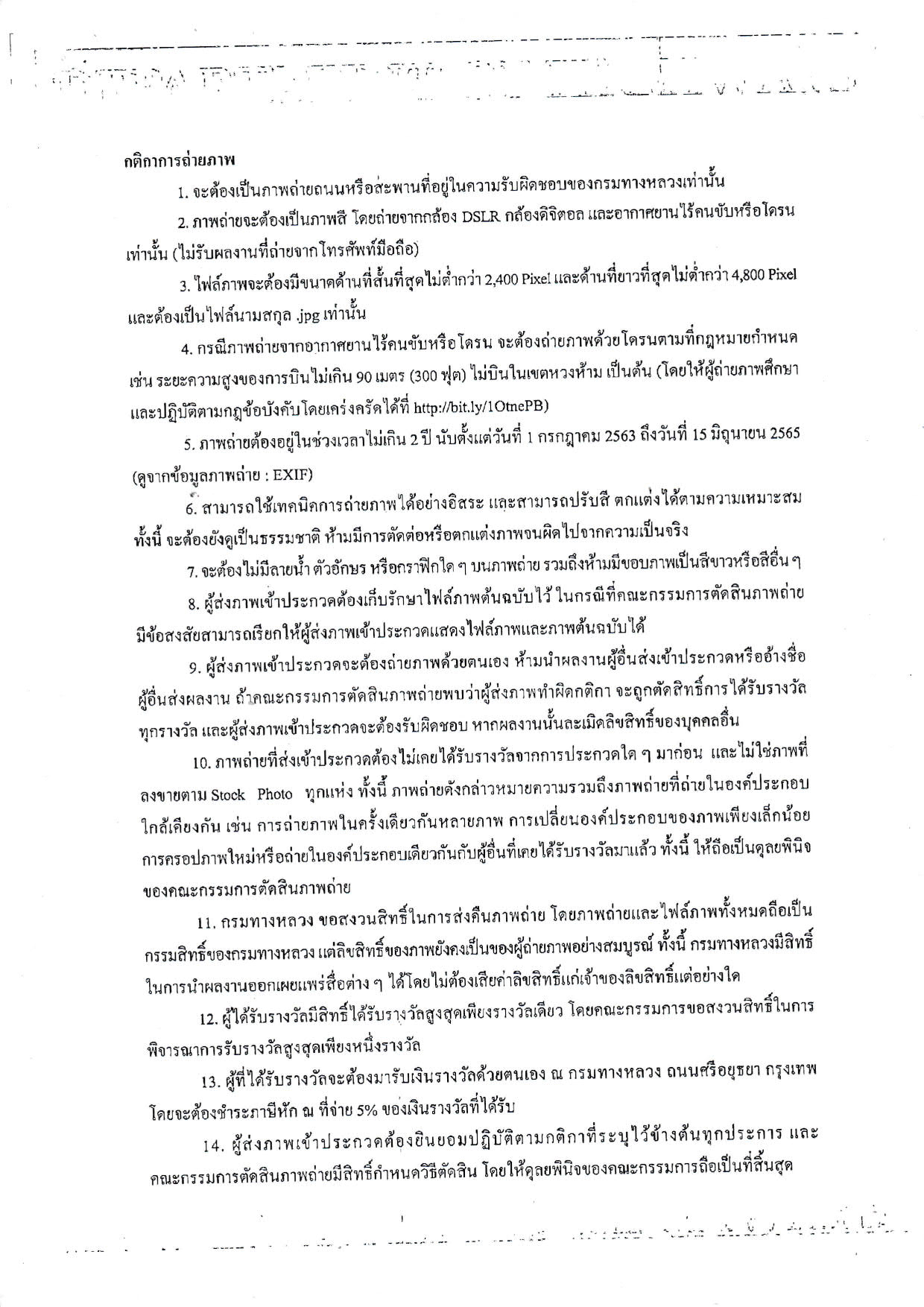 ขอเชิญชวนผู้ที่ชื่นชอบการถ่ายภาพและสนใจในโครงการฯ ร่วมส่งภาพถ่ายเข้าประกวด โดยสามารถส่งผลงานได้ที่ฝ่ายประชาสัมพันธ์สำนักงานเลขานุการกรม ตั้งแต่วันที่ ๑ มกราคม – ๑๕ มิถุนายน ๒๕๖๕ และประกาศผลการตัดสินภายในเดือนกรกฏาคม ๒๕๖๕ สามารถดูรายละเอียดเพิ่มเติมได้ที่เว็บไซต์กรมทางหลวง
