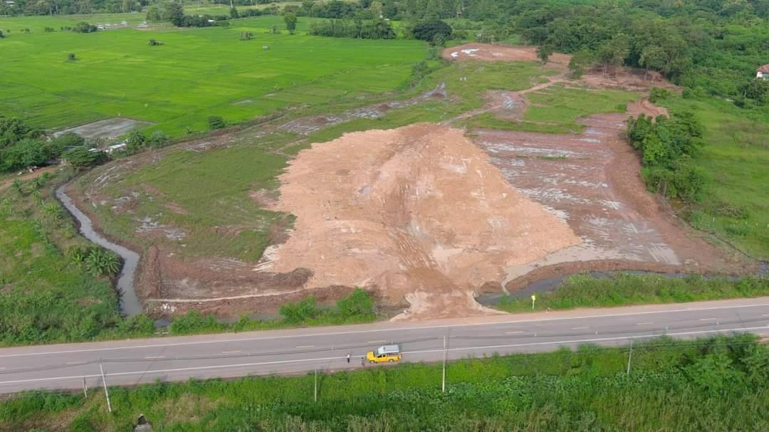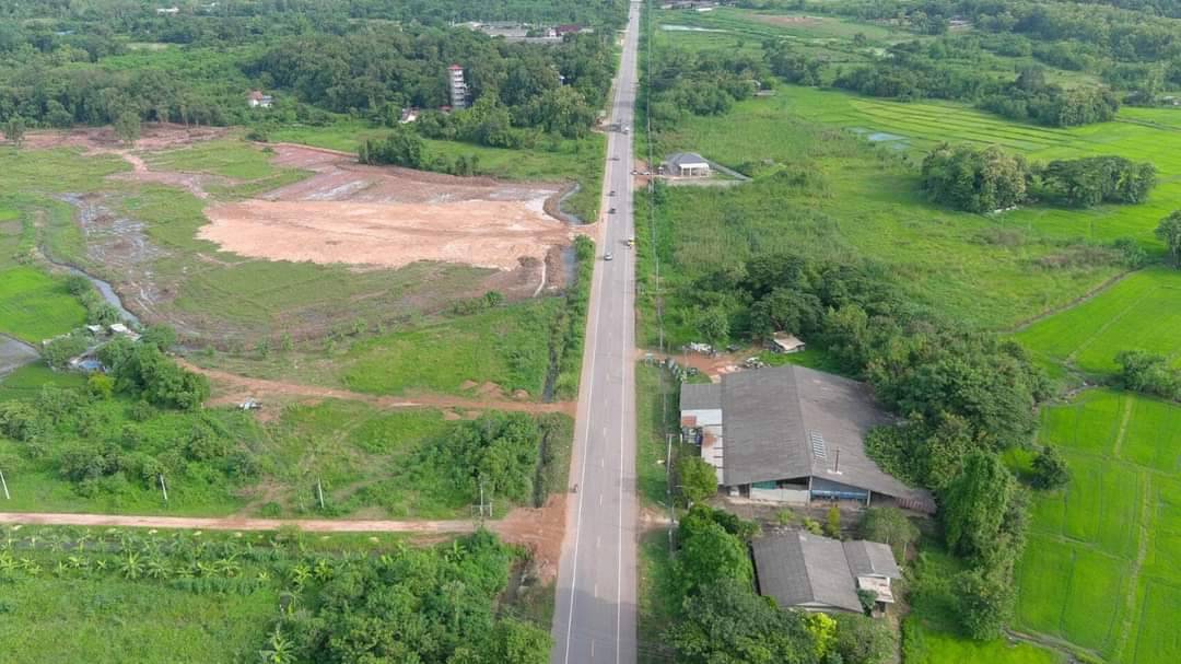 ภาพถ่ายทางอากาศสถานการณ์หลังน้ำท่วม บริเวณทางหลวงหมายเลข 1036 ตอน บ้านฟ่อน - ศูนย์สร้างทางลำปาง ระหว่าง กม.2+050 - กม.2+100