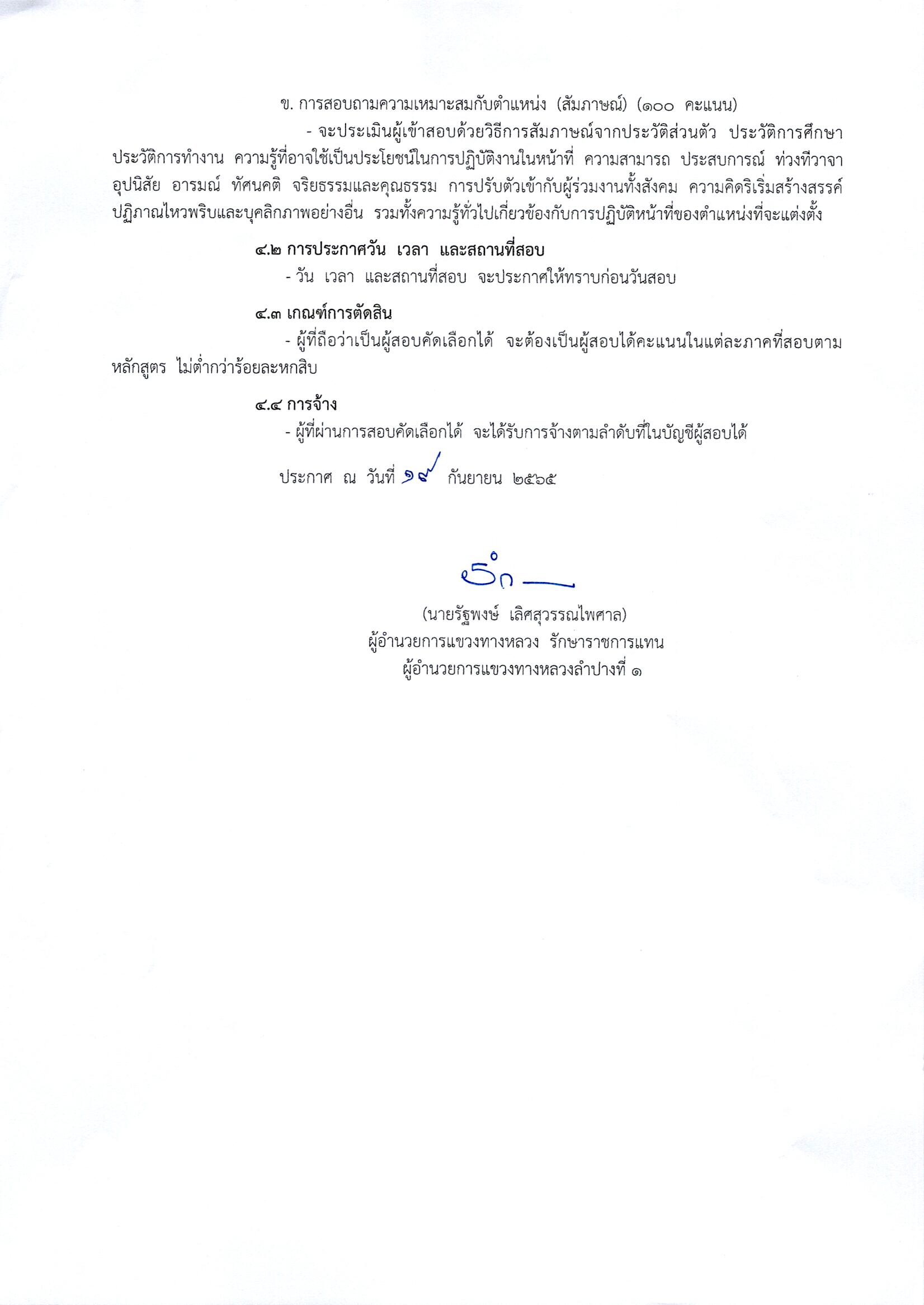 แขวงทางหลวงลำปางที่ 1 ขยายเวลาการรับสมัครบุคคลเพื่อสอบคัดเลือกเป็นลูกจ้างชั่วคราว ตำแหน่ง คนงาน ทำหน้าที่เจ้าหน้าที่พัสดุและสัญญา จำนวน 1 อัตรา