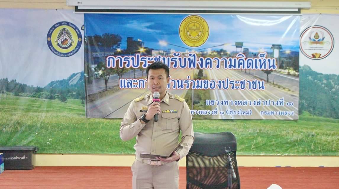 นายรัฐพงษ์ เลิศสุวรรณไพศาล ผู้อำนวยการแขวงทางหลวงลำปางที่ 1 ได้จัดการประชุมรับฟังความคิดเห็นและการมีส่วนร่วมของประชาชน โครงการก่อสร้างสำรวจและออกแบบพร้อมเตรียมก่อสร้างที่ได้รับงบประมาณในปี พ.ศ. 2566 โครงการงานก่อสร้างทางหลวงหมายเลข 1 ตอน แม่เชียงรายบน-ดอนไชย ระหว่าง กม.583+216 - กม.593+569 ปีงบประมาณ 2566 ระยะทางประมาณ 10.353 กิโลเมตร ได้รับเกียรติจาก นายสามารถ ชัยวังตา ปลัดอำเภอแม่พริก เป็นประธานกล่าวเปิดโครงการฯ โดยมี นายสุรพงค์ สุทธนะ รองผู้อำนวยการฯ ฝ่ายปฏิบัติการ เป็นผู้กล่าวรายงาน นายสมชัย สายด้วง นายกเทศมนตรีตำบลพระบาทวังตวง นายวันเฉลิม เจตะบุตร รองผู้อำนวยการฯ ฝ่ายวิศวกรรม นายจเรพันธ์ เคลือบคนโท รองผู้อำนวยการฯ ฝ่ายบริหาร และนายนิทัศน์ ปังกิลินันท์ หัวหน้าหมวดทางหลวงแม่พริก นายสุรทิน เครือทนุ นายช่างโครงการฯ นายอภิสิทธิ์ หาญณรงค์ นายช่างโยธาอาวุโสสำนักก่อสร้างทางที่ 1 นายกฤตย์ คมขำ วิศวกรโยธาชำนาญการพิเศษสำนักสำรวจและออกแบบ เข้าร่วมการประชุมโครงการดังกล่าว รวมถึงได้เชิญหน่วยงานภาครัฐ องค์กรปกครองส่วนท้องถิ่น ผู้นำชุมชน ประชาชนและผู้ที่มีส่วนได้ส่วนเสียที่เกี่ยวข้องในพื้นที่ ร่วมรับฟังข้อมูลรายละเอียด พร้อมแสดงความคิดเห็นและข้อเสนอแนะต่างๆ เพื่อเป็นแนวทางนำไปปรับปรุงและแก้ไข เพื่อเพิ่มประสิทธิภาพด้านการจราจรและอำนวยความปลอดภัย ให้เหมาะสมต่อไป