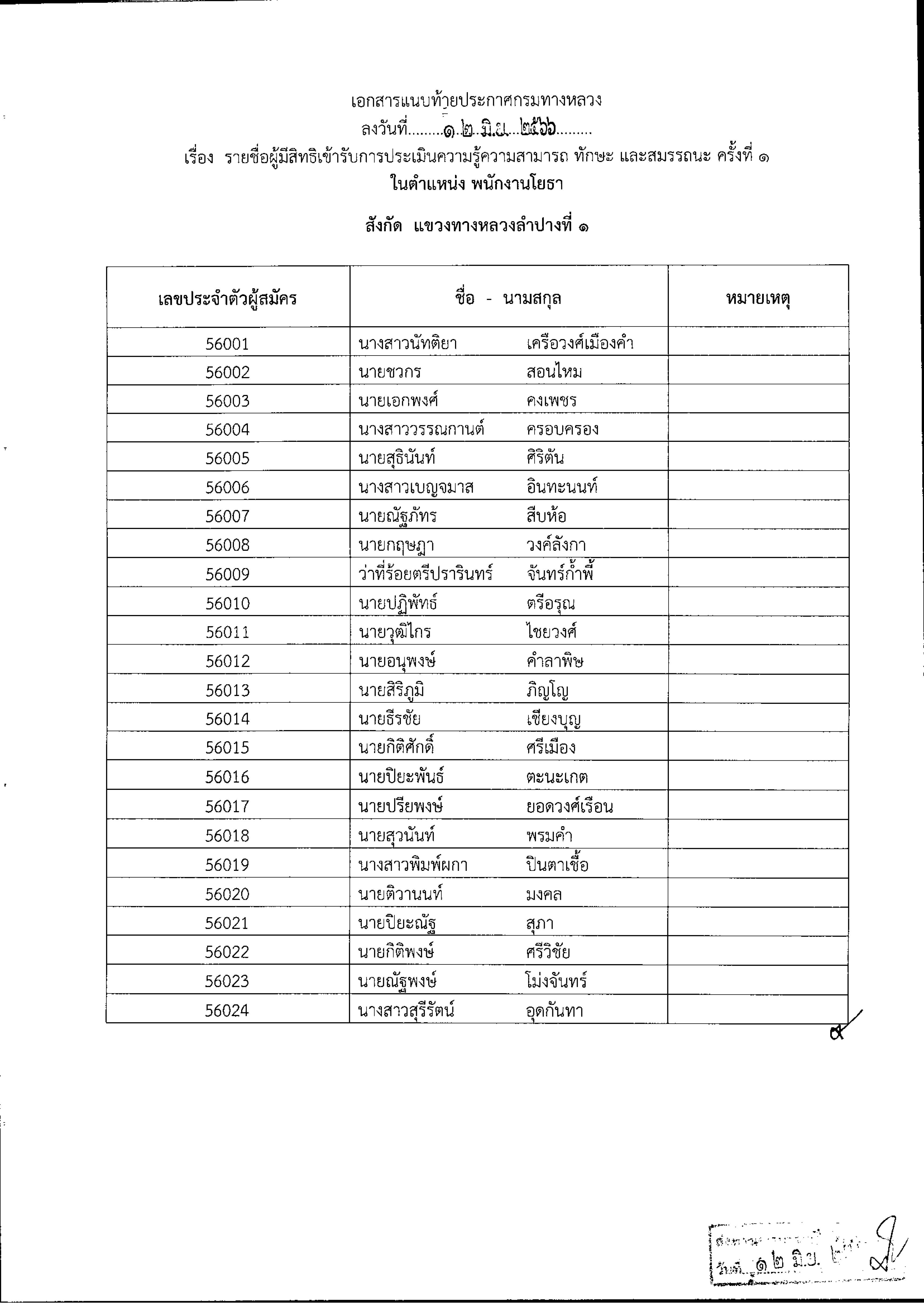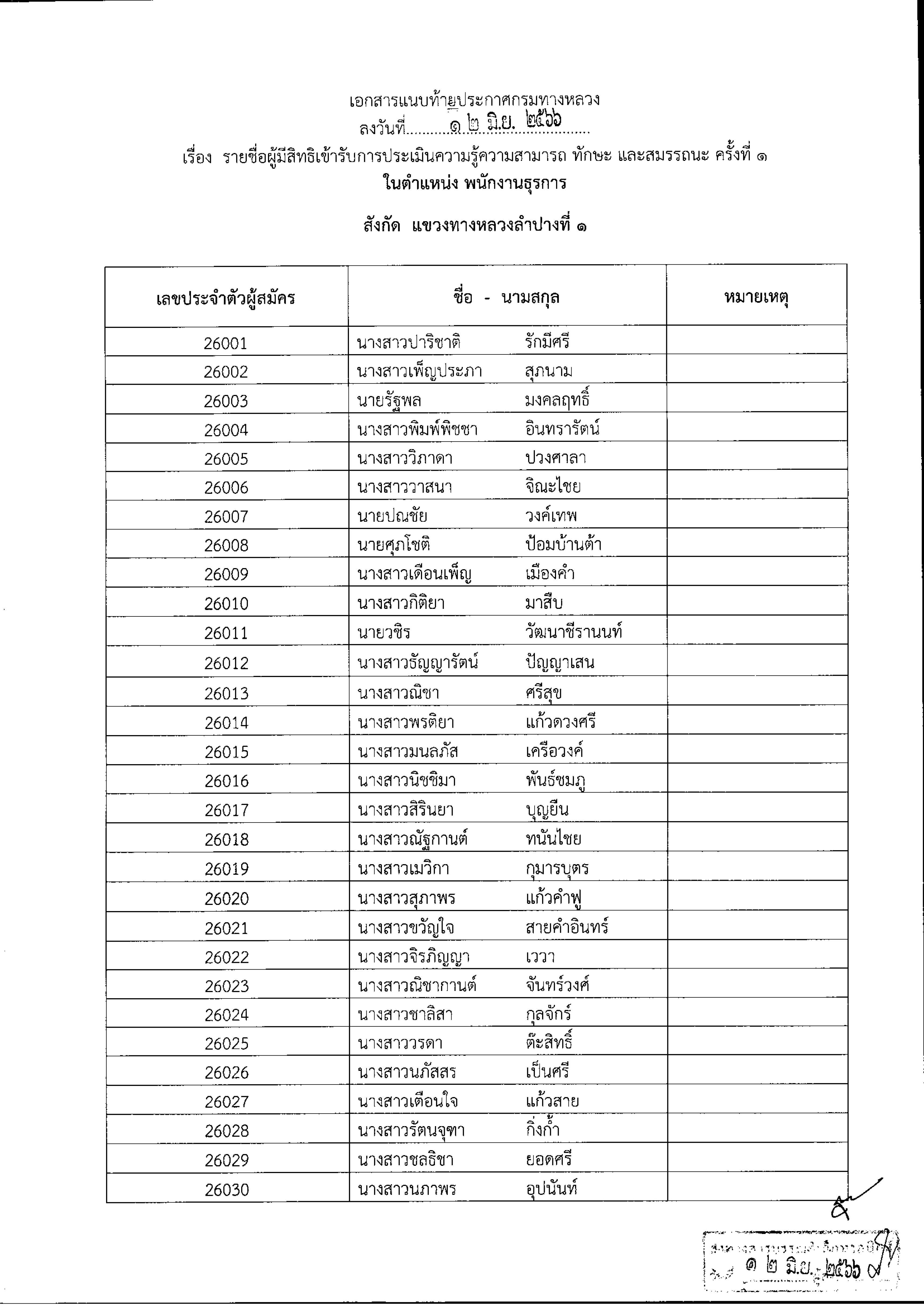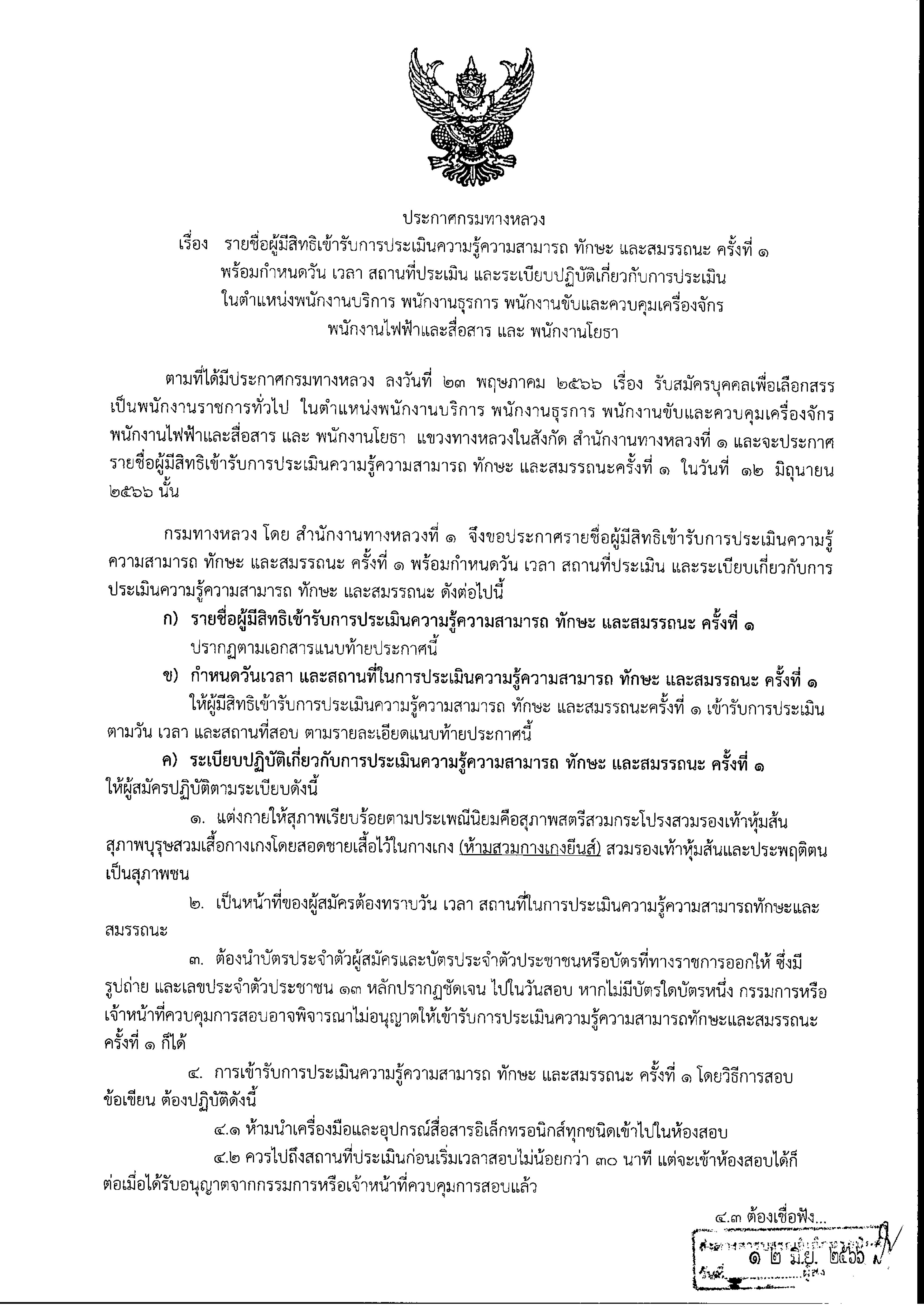 ประกาศรายชื่อผู้มีสิทธิ์เข้ารับการประเมินความรู้ตวามสามารถ ทักษะ และสมรรถนะ ครั้งที่ 1 กำหนด วัน เวลา สถานที่ประเมิน และระเบียบปฏิบัติเกี่ยวกับการประเมินเพื่อเลือกสรรเป็นพนักงานราชการทั่วไป