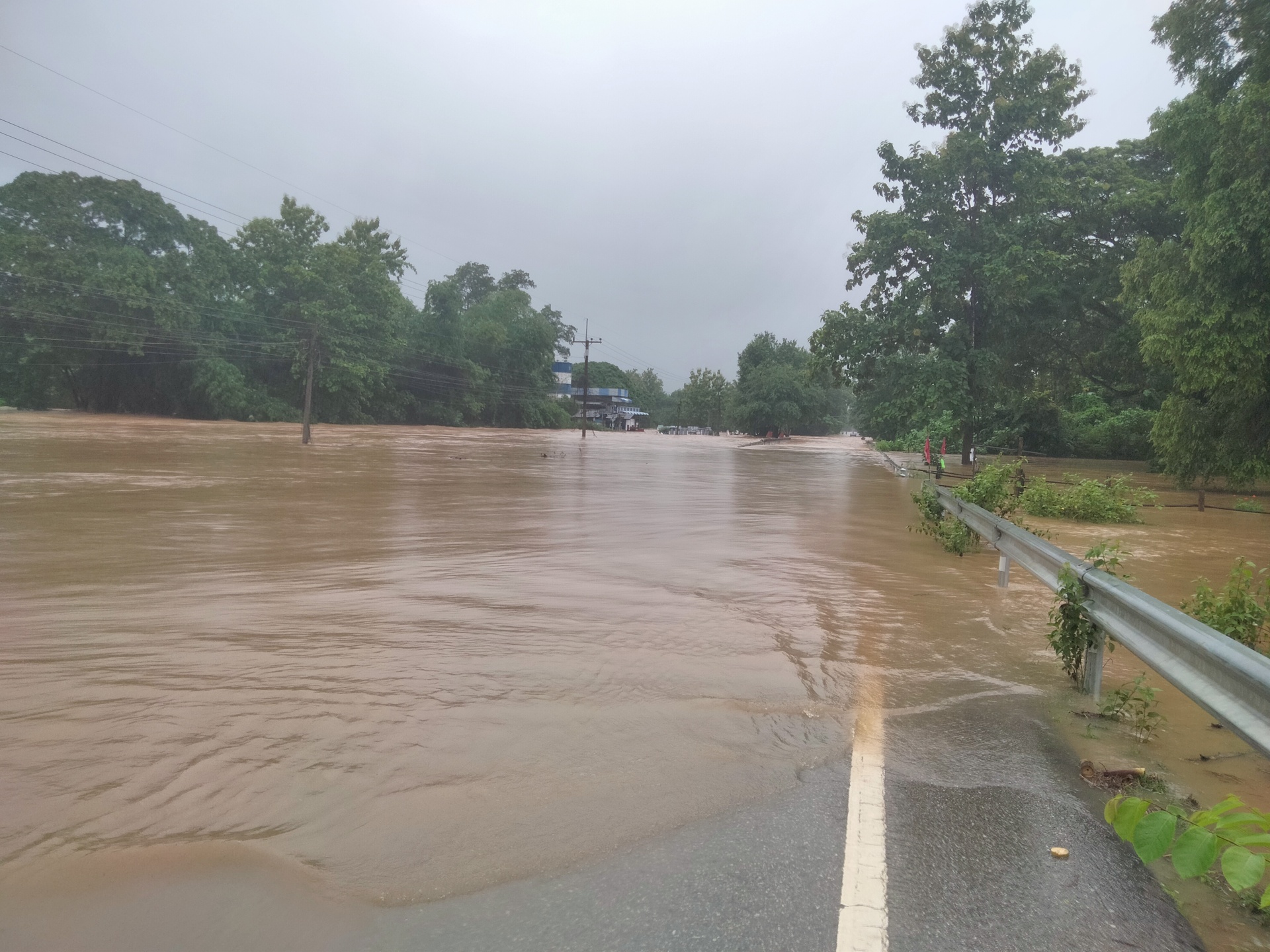 เนื่องจากมีฝนตกหนัก ทำให้มีน้ำท่วมขังทางหมายเลขทางหลวง 106